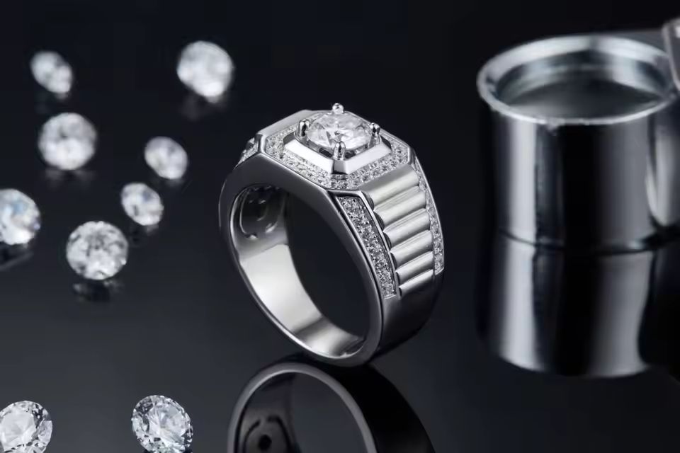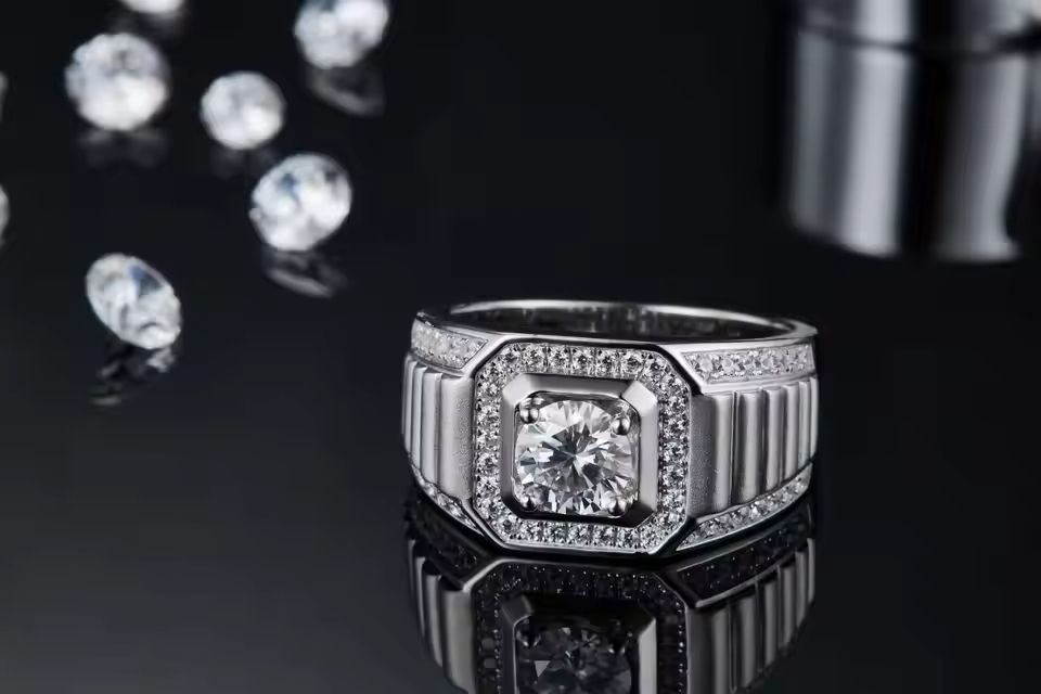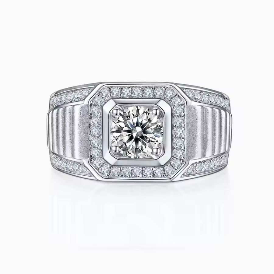 1 Carat Moissanite Men's Ring S925 Silver Inlaid Stylish & Creative Perfect for Parties Dates Anniversaries Birthday Gifts