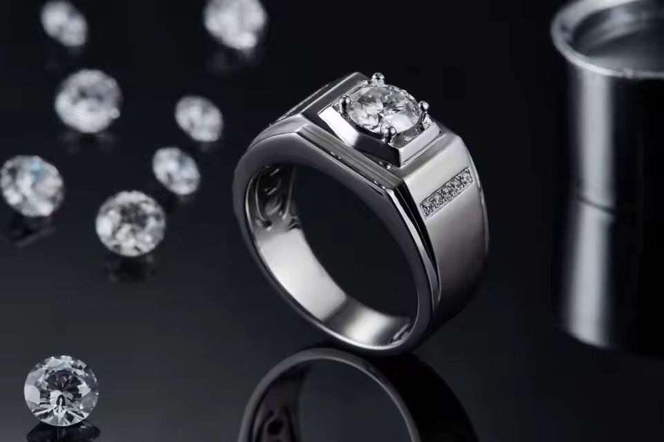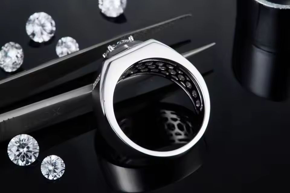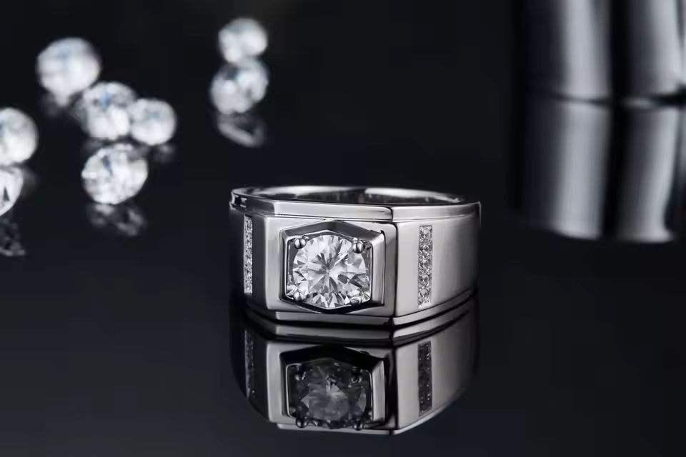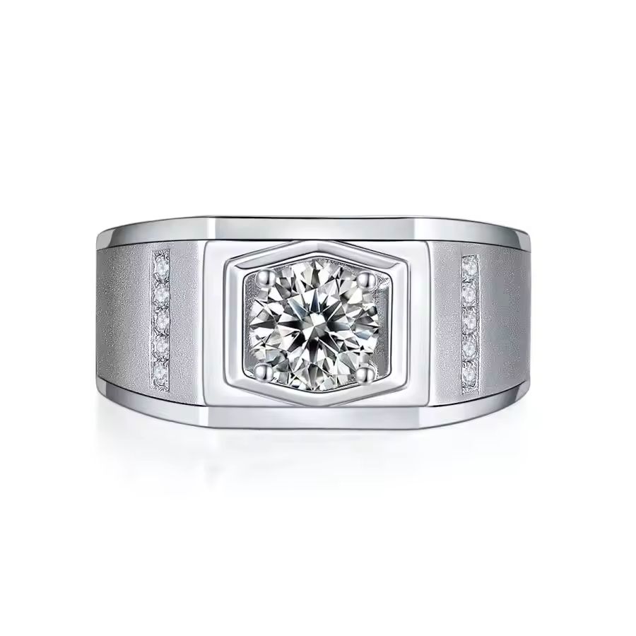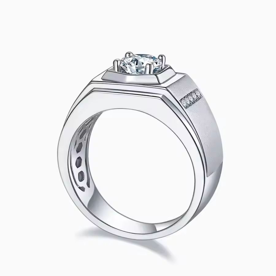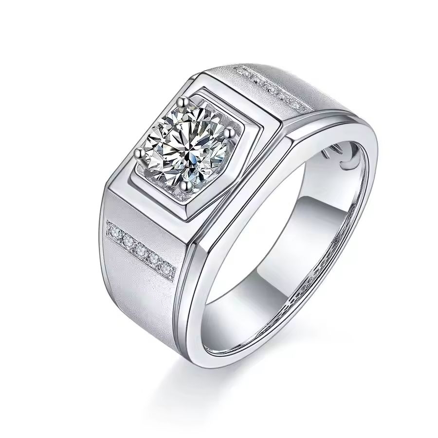 1 ct Moissanite Engagement Ring for Men S925 Silver Wedding Band Anniversary & Valentine's Day Luxury Gift