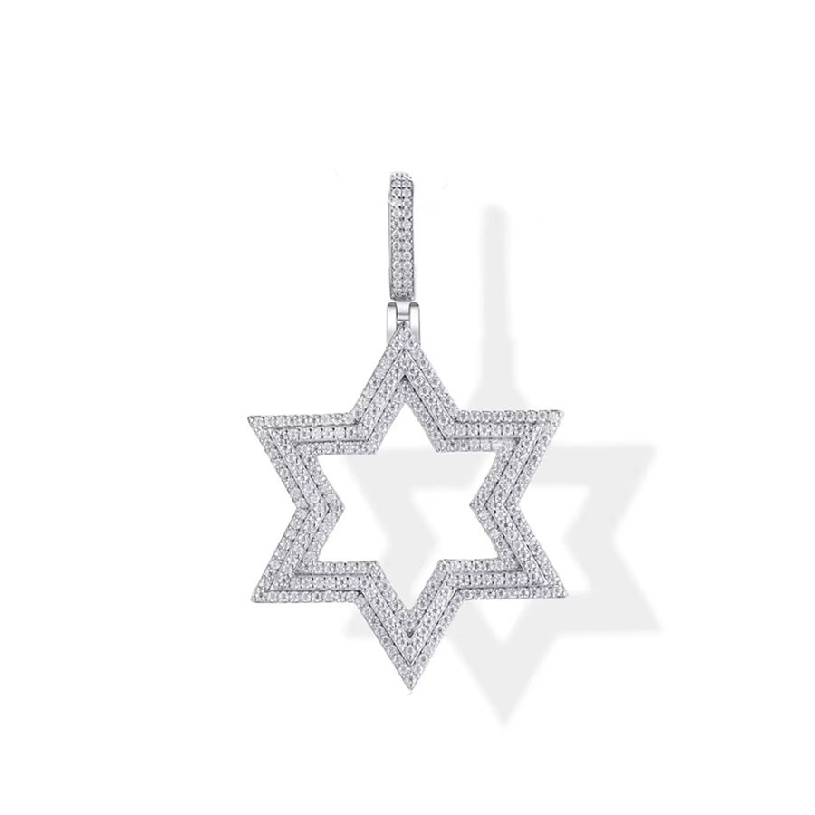 2.71CTW Moissanite Star Pendant Hip Hop Style Six-Point Full Iced Out 925 Sterling Silver 18K Gold Plated for Men and Women