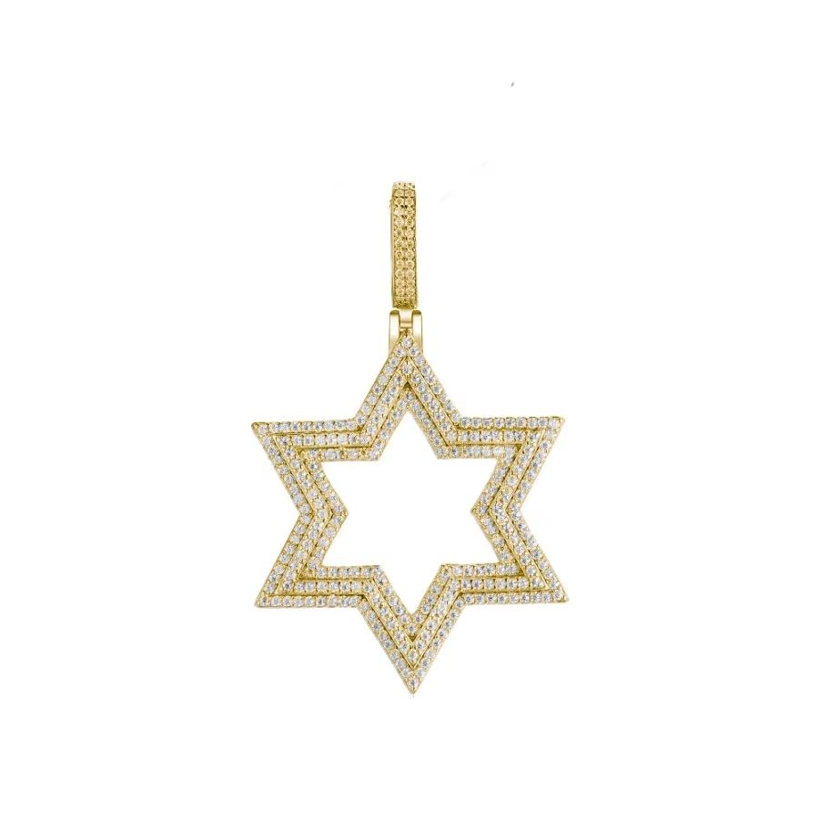 2.71CTW Moissanite Star Pendant Hip Hop Style Six-Point Full Iced Out 925 Sterling Silver 18K Gold Plated for Men and Women