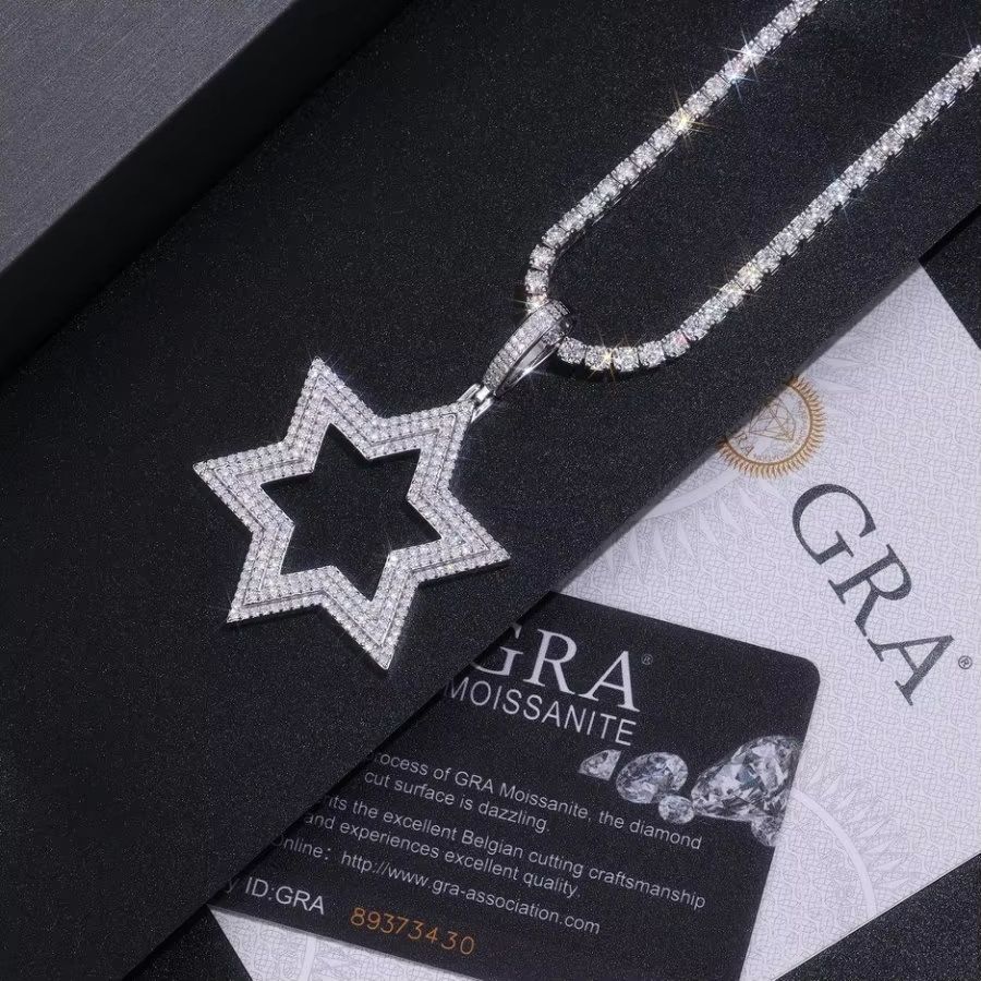 2.79CTW Star Moissanite Pendant Necklace 925 Sterling Silver Full Moissanite Pave With Logo Hip Hop Streetwear Style