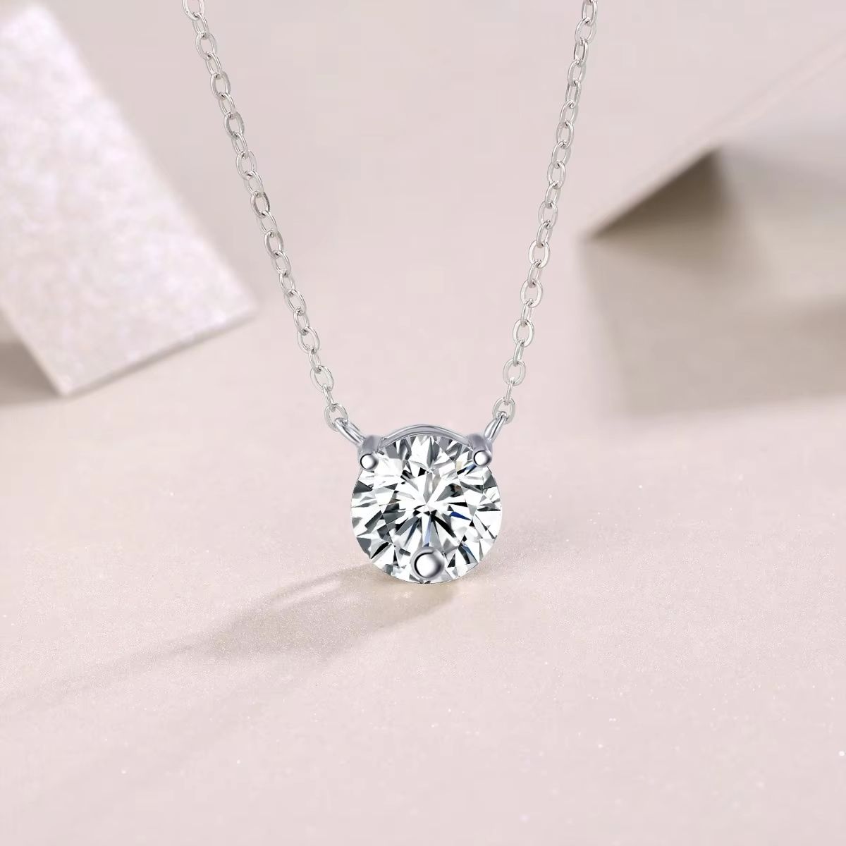 2 Carat 18K White Gold Moissanite Necklace with Diamond Charms Link Chain Pendant Jewelry