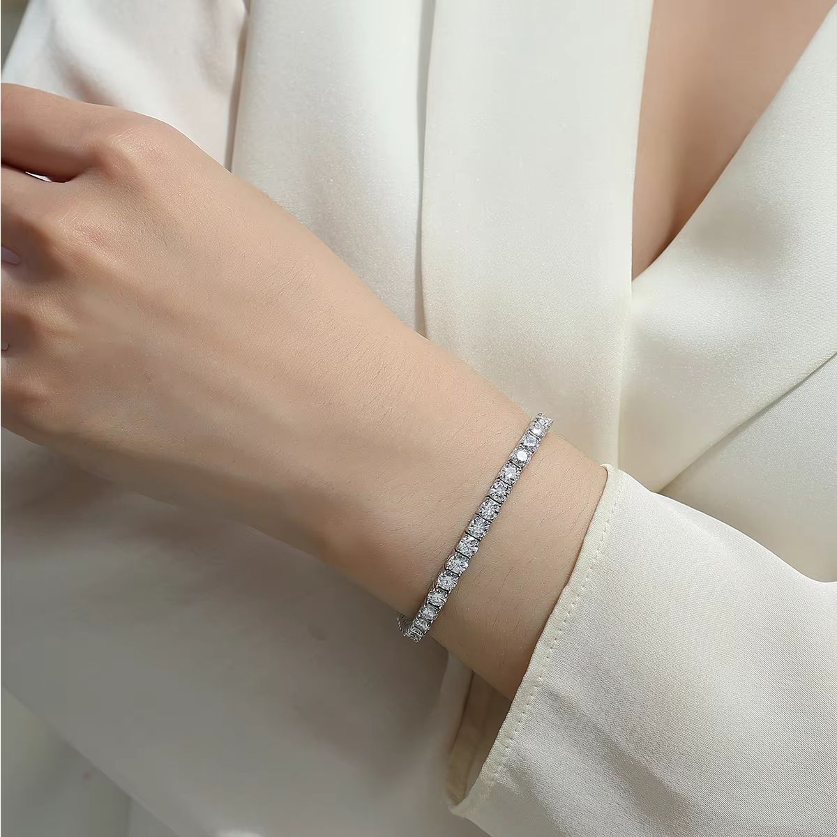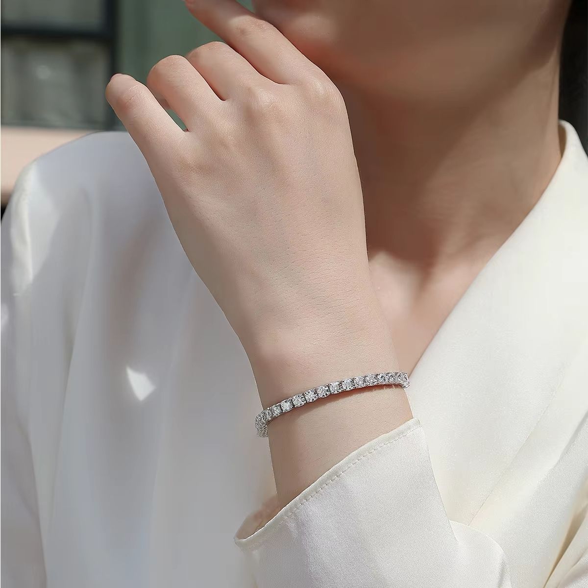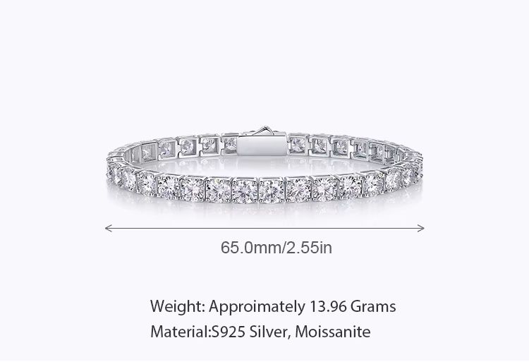 3.0mm Moissanite 925 Silver Bracelets White Gold Plated Fine 5mm Tennis Chain Men Women Luxury Bracelets with Gem