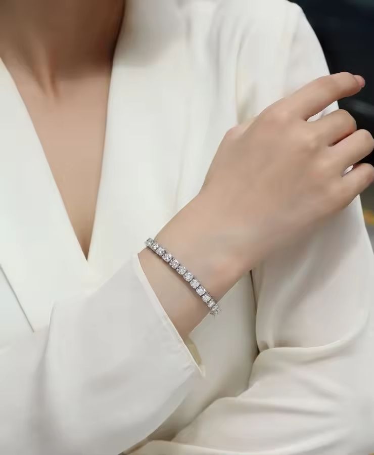 5.0mm Moissanite Tennis Bracelet S925 Sterling Silver Hypoallergenic Sparkling Gift GRA Certificate