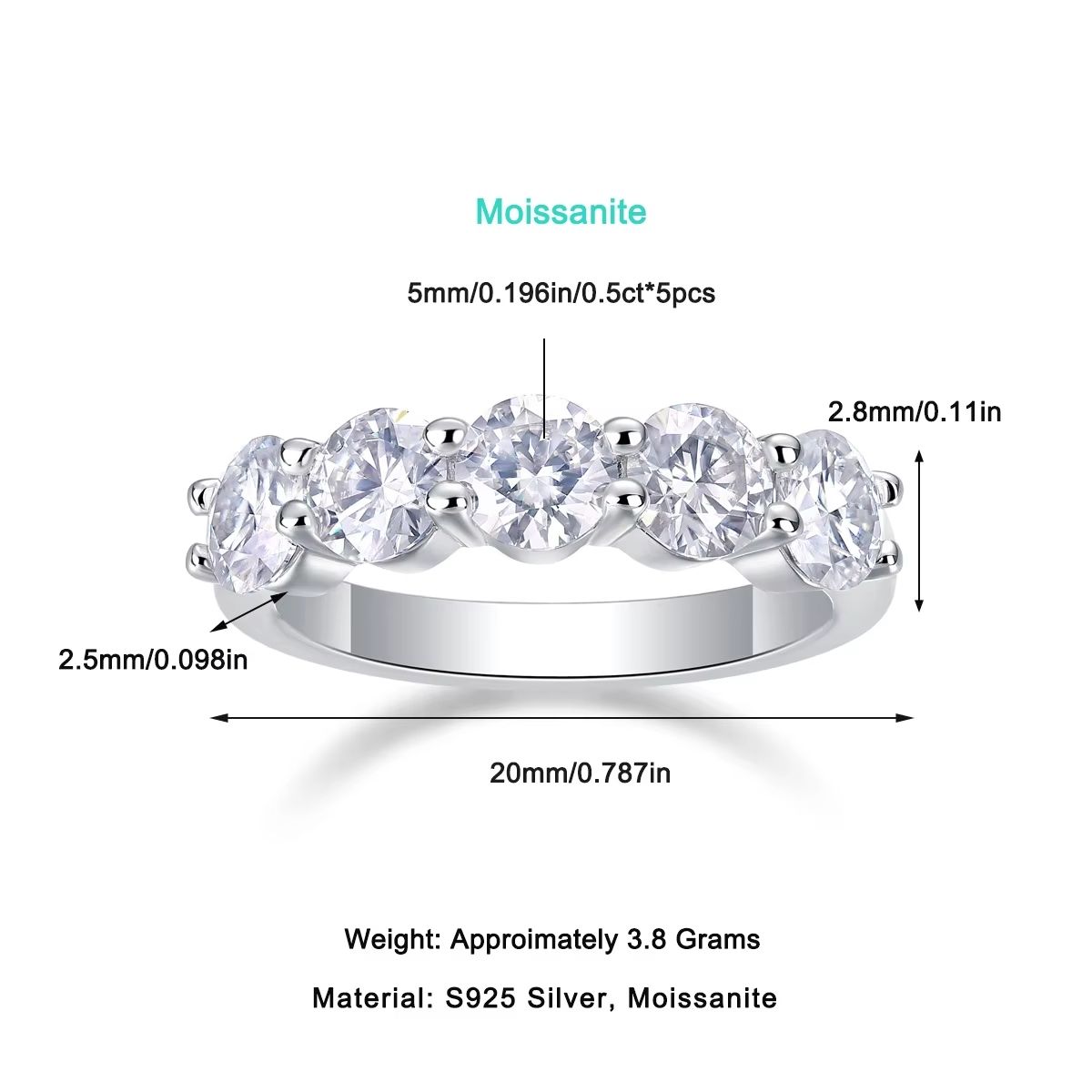 5mm GRA Real Moissanite Diamonds VVS1 D Color 925 Sterling Silver Wedding Band Engagement Rings Fine Jewelry