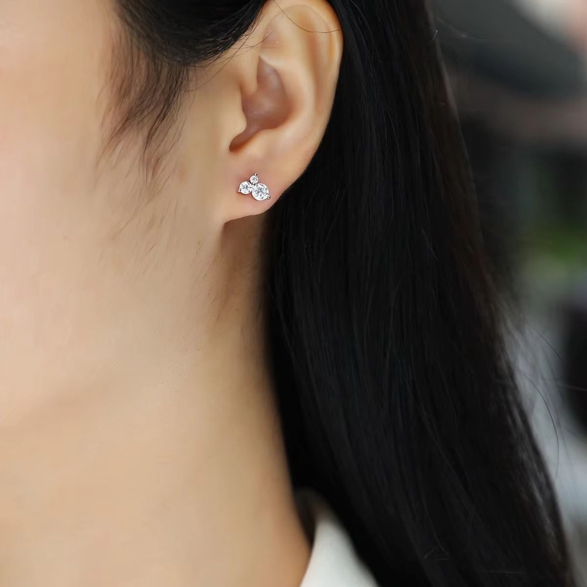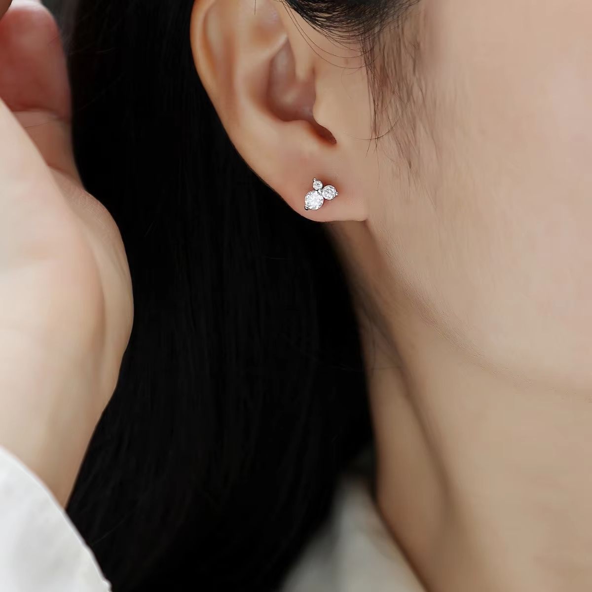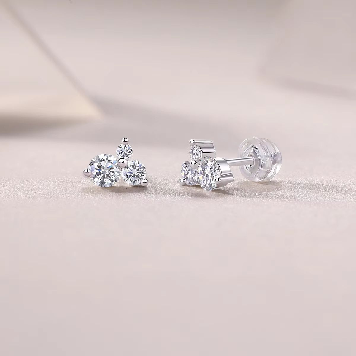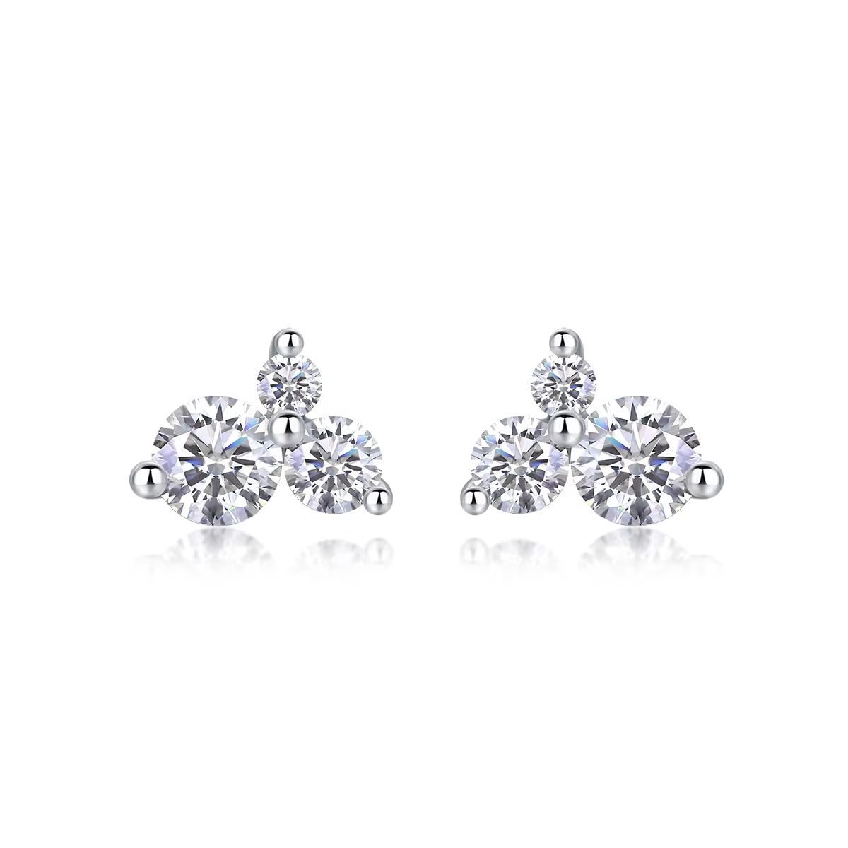 Classic 0.3ct Moissanite Stud Earrings White Gold 925 Sterling Silver with VVS Three-Stone for Men and Women
