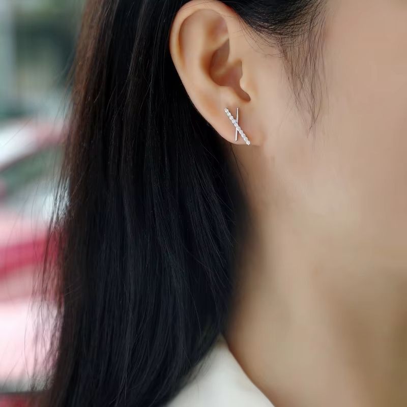 Cross Design Elegant Women Moissanite Earrings S925 Sterling Silver Earrings Female Fashionable Jewelry Earrings