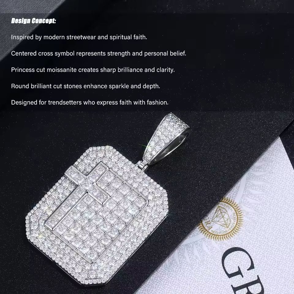 Cross Moissanite Pendant for Man S925 Silver 18K Gold Plated Hip Hop Street Style Design Comes with GRA Certificate