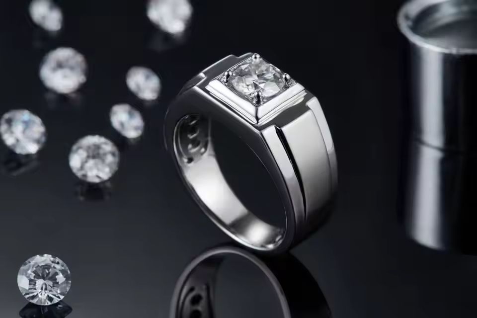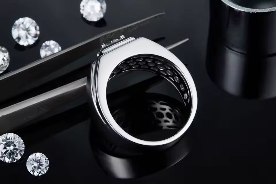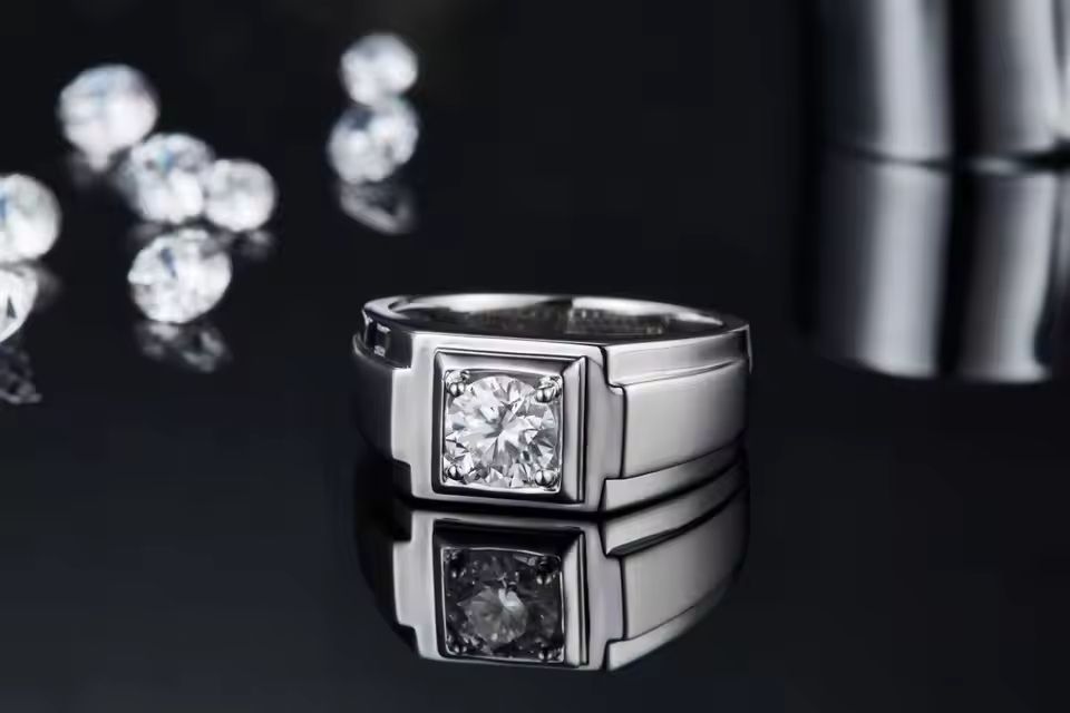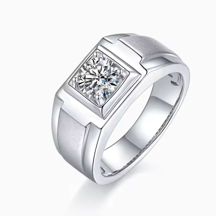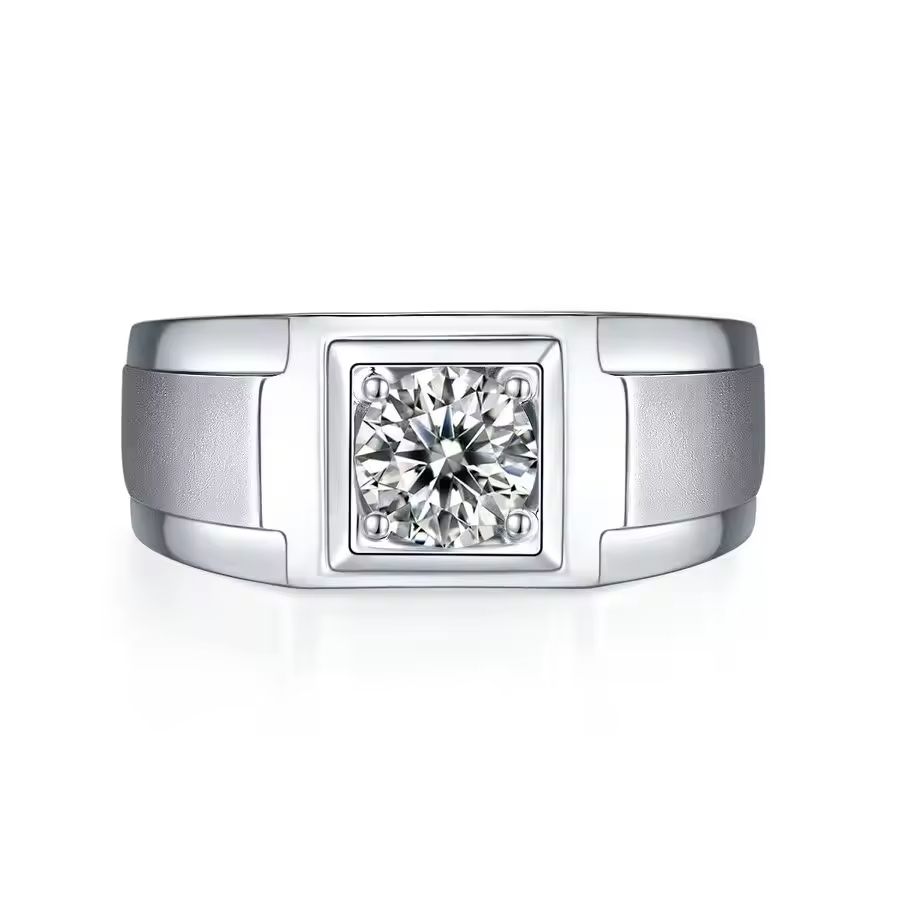 Eternal Land 1 Carat Dazzling Moissanite Ring Elegant 925 Silver Men's Wedding Band Perfect for Anniversaries & Gifts