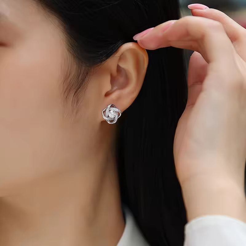 Exquisite Fashion 925 Sterling Silver Elegant Clover Stud Earrings Flower Design Stud Earrings Hypoallergenic Earring