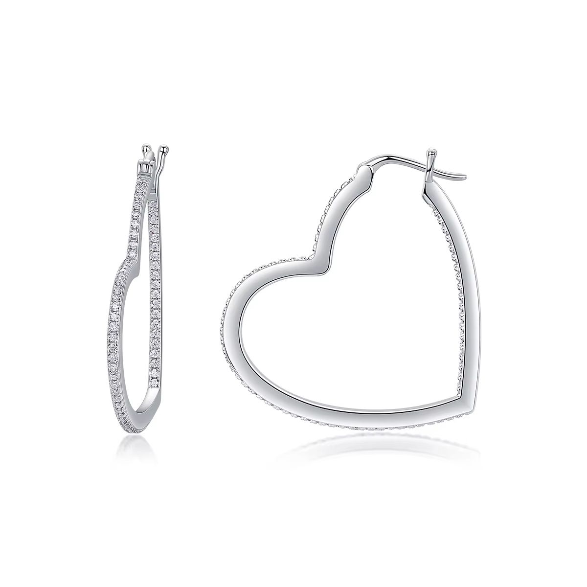 Favorable Price Original Factory Fine 925 Silver Hoop Earrings Women Fashion Rhodium Plated Earrings Heart Shape Earrings