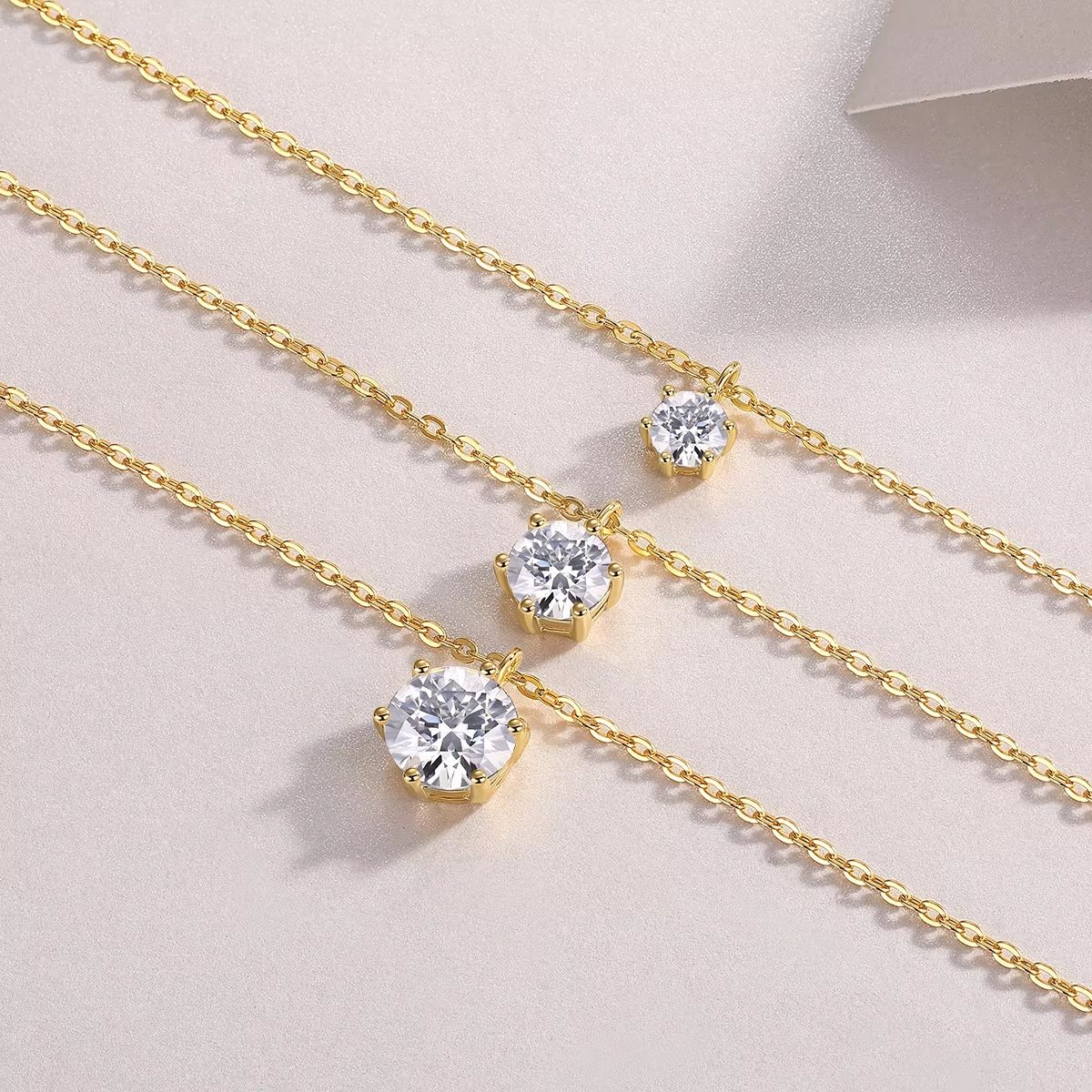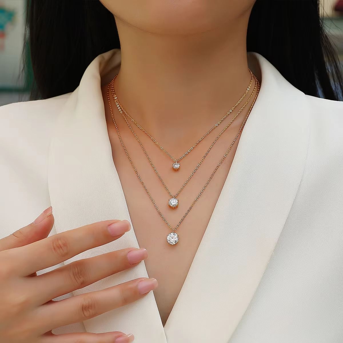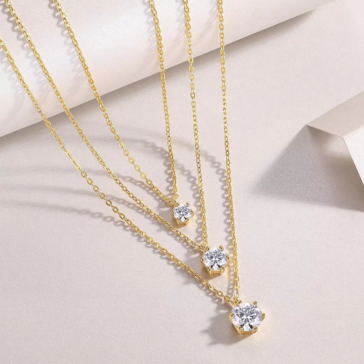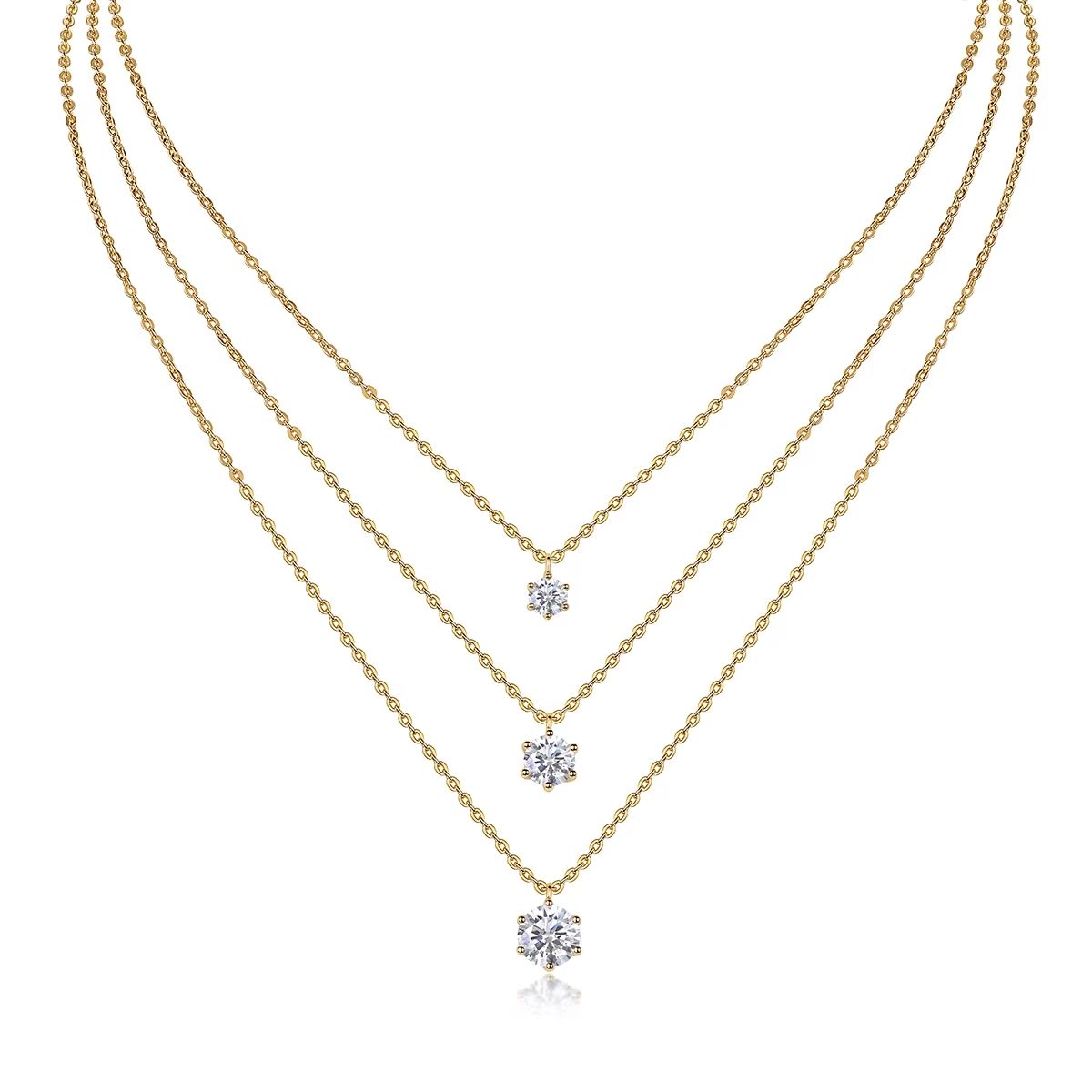 Fine Jewelry 18K Gold Plated Pendant Chains Necklace Multiple 925 Silver Three Layer 2ct Moissanite Necklaces