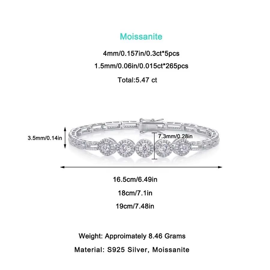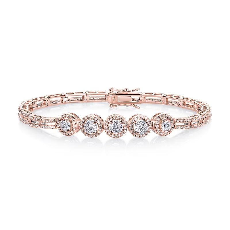 Five Round Halo Moissanite Bracelet S925 Sterling Silver Unisex Jewelry Rose Gold