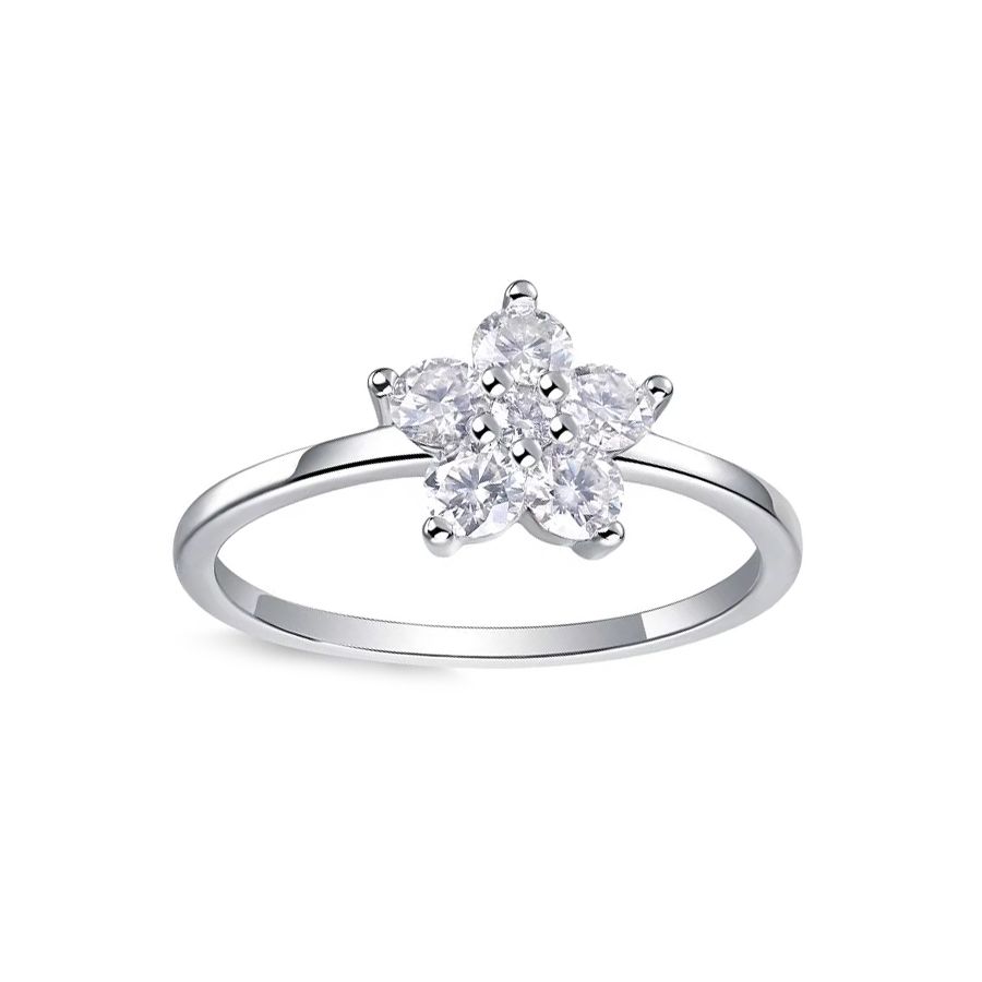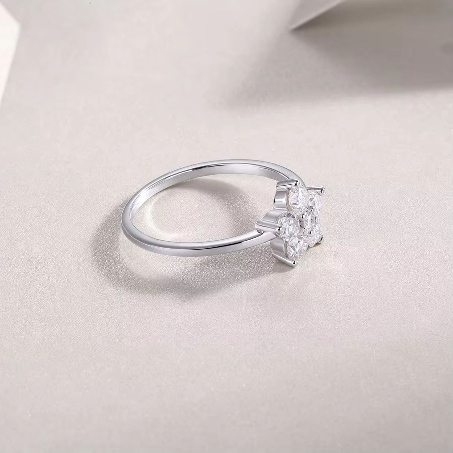 Floral Cluster Setting 0.53CTW Moissanite Ring Elegant 925 Sterling Silver & 18K Gold Plated Gift for Women