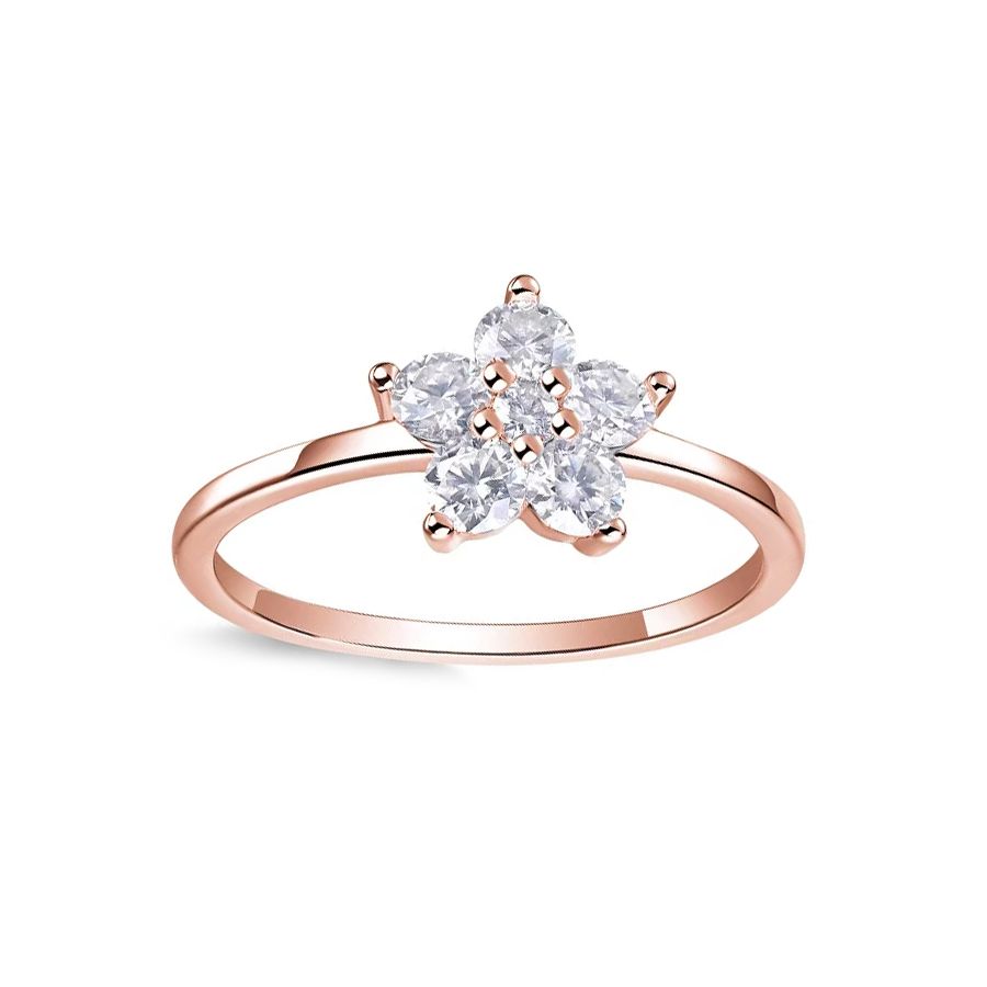 Floral Cluster Setting 0.53CTW Moissanite Ring Elegant 925 Sterling Silver & 18K Gold Plated Gift for Women