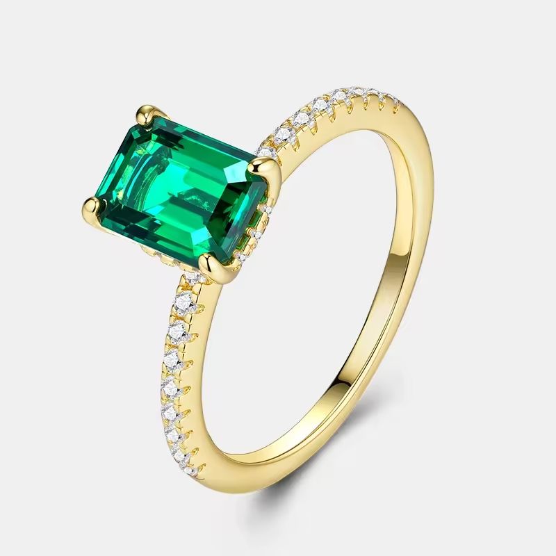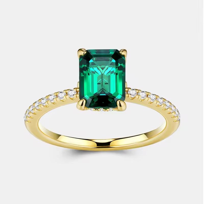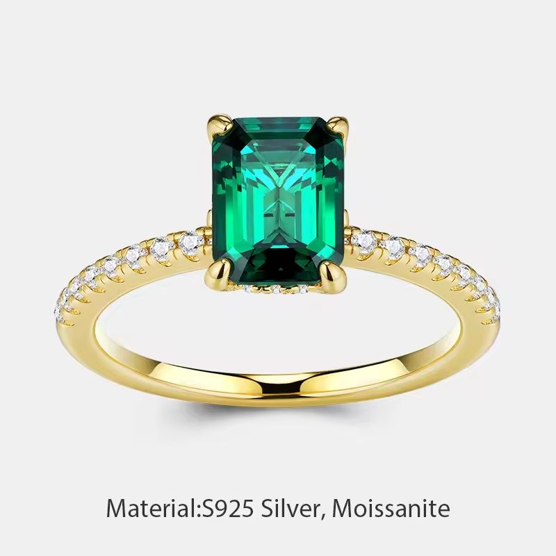 Gemstone Custom Emerald 925 Sterling Silver Engagement Women Rings