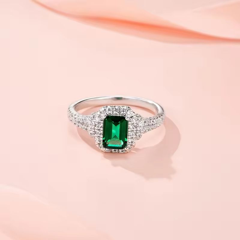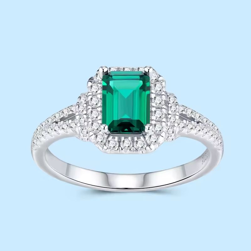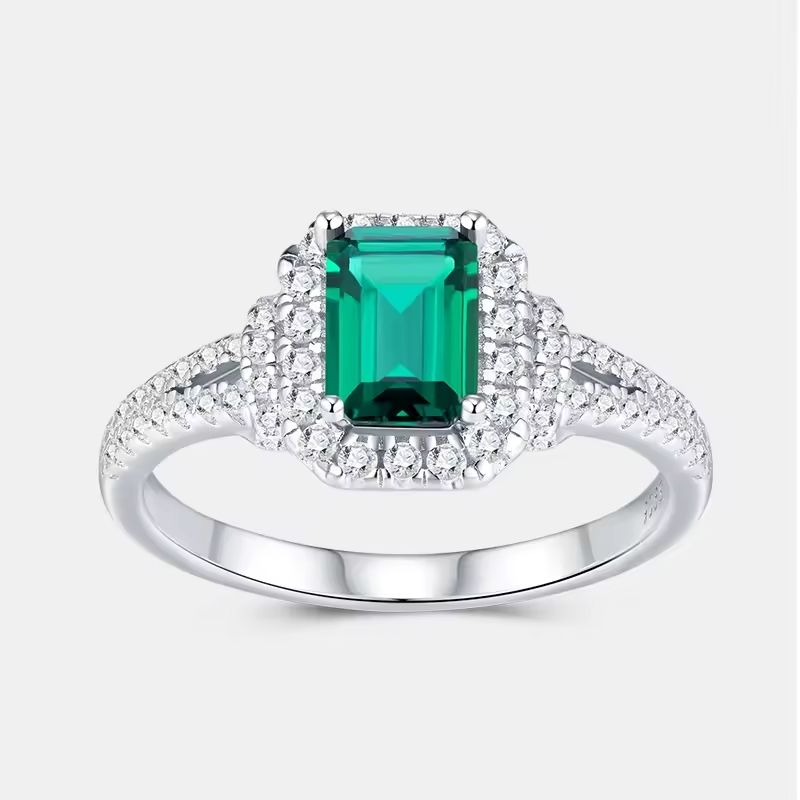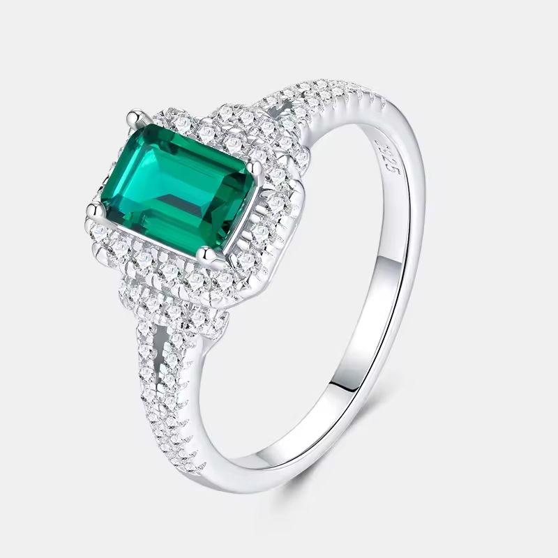 Gemstone Emerald 925 Sterling Silver Bridal Fine Jewelry Engagement Wedding Women Rings
