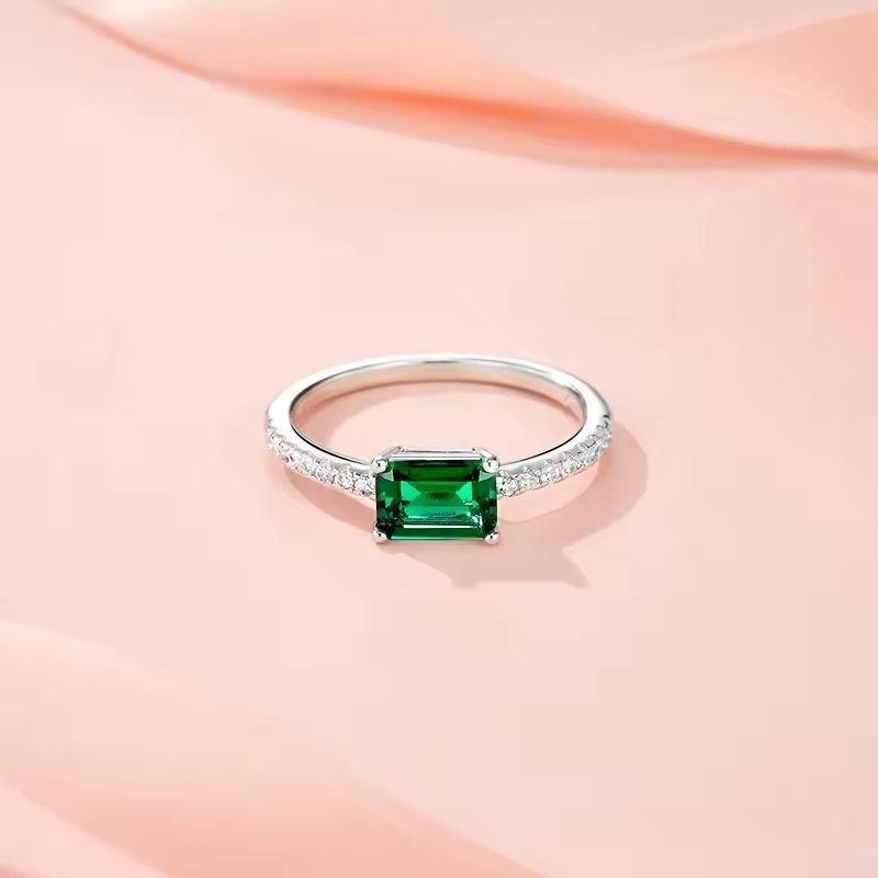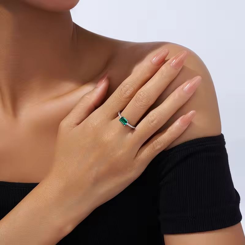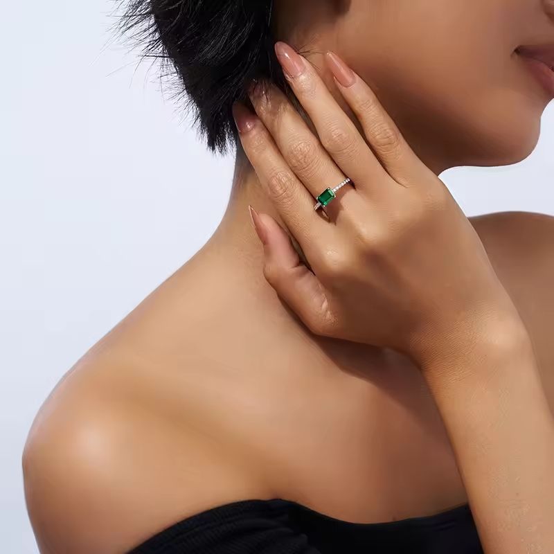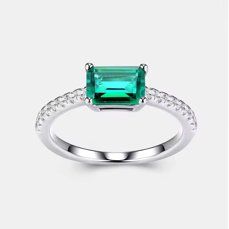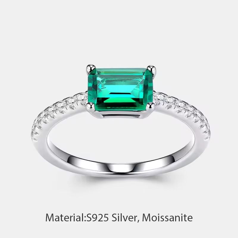 Gemstone Emerald Lab Claw Setting Green Engagement Wedding Ring