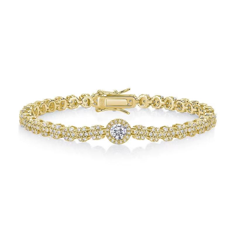 Halo S925 Sterling Silver Tennis Bracelet Lab Diamonds Luxury Unisex Moissanite Bracelets Gold