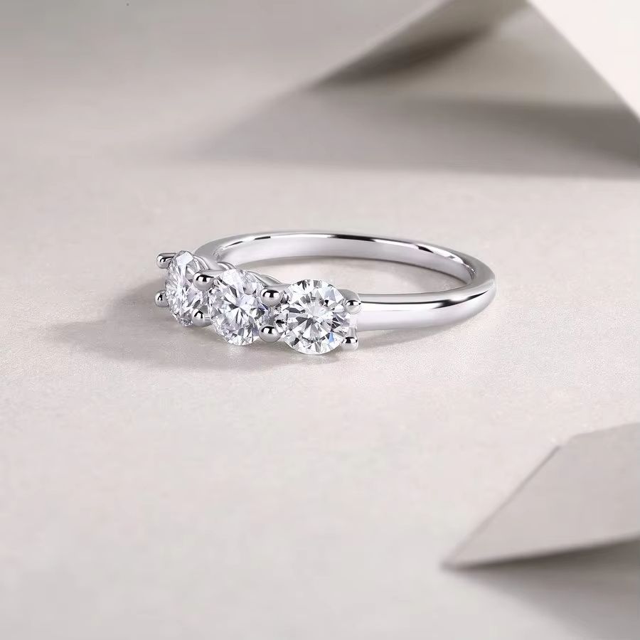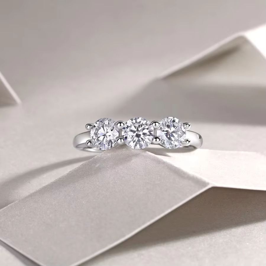 High Quality S925 Sterling Silver 3 Stone Moissanite Wedding Band Anniversary Gift for Women
