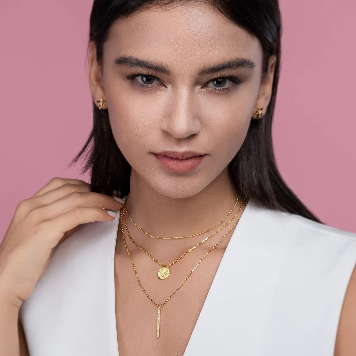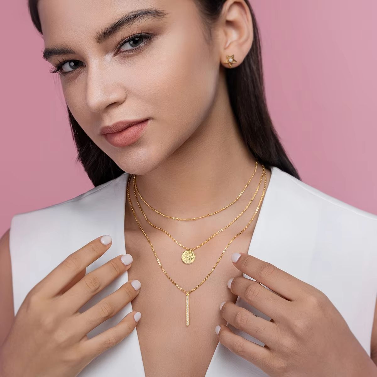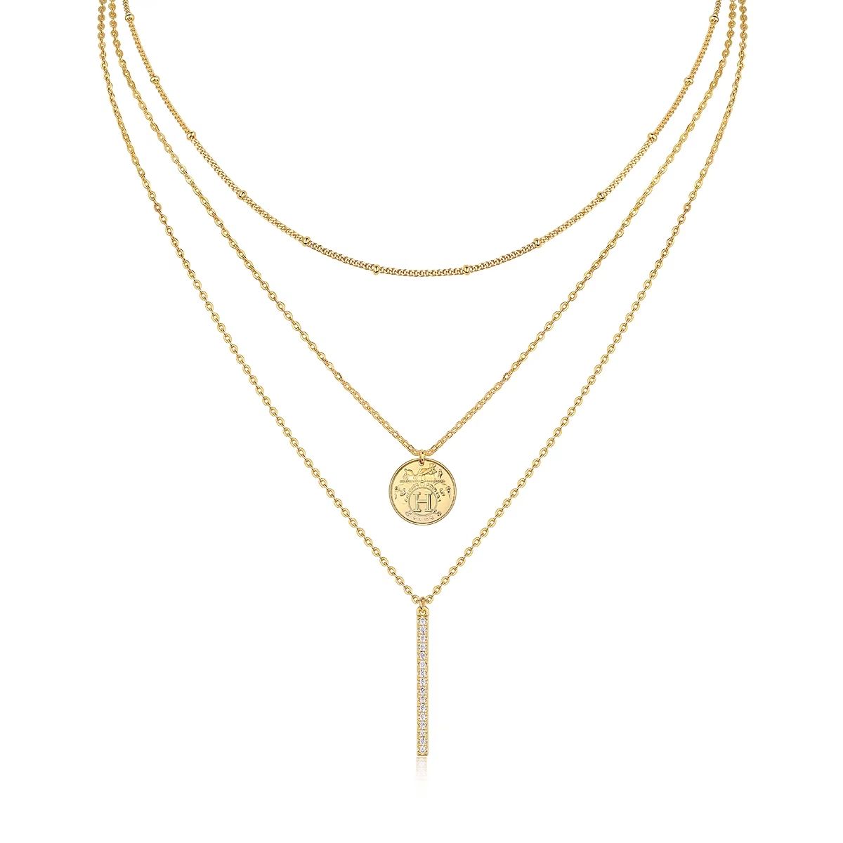 Hot Selling Fashion Clavicle Three Layer Chain Choker Necklace Elegant Multi-Layered Pendant Necklaces Gold Plated