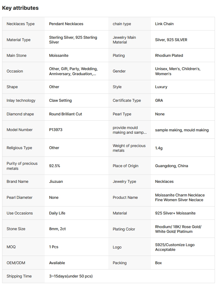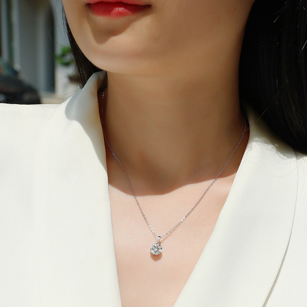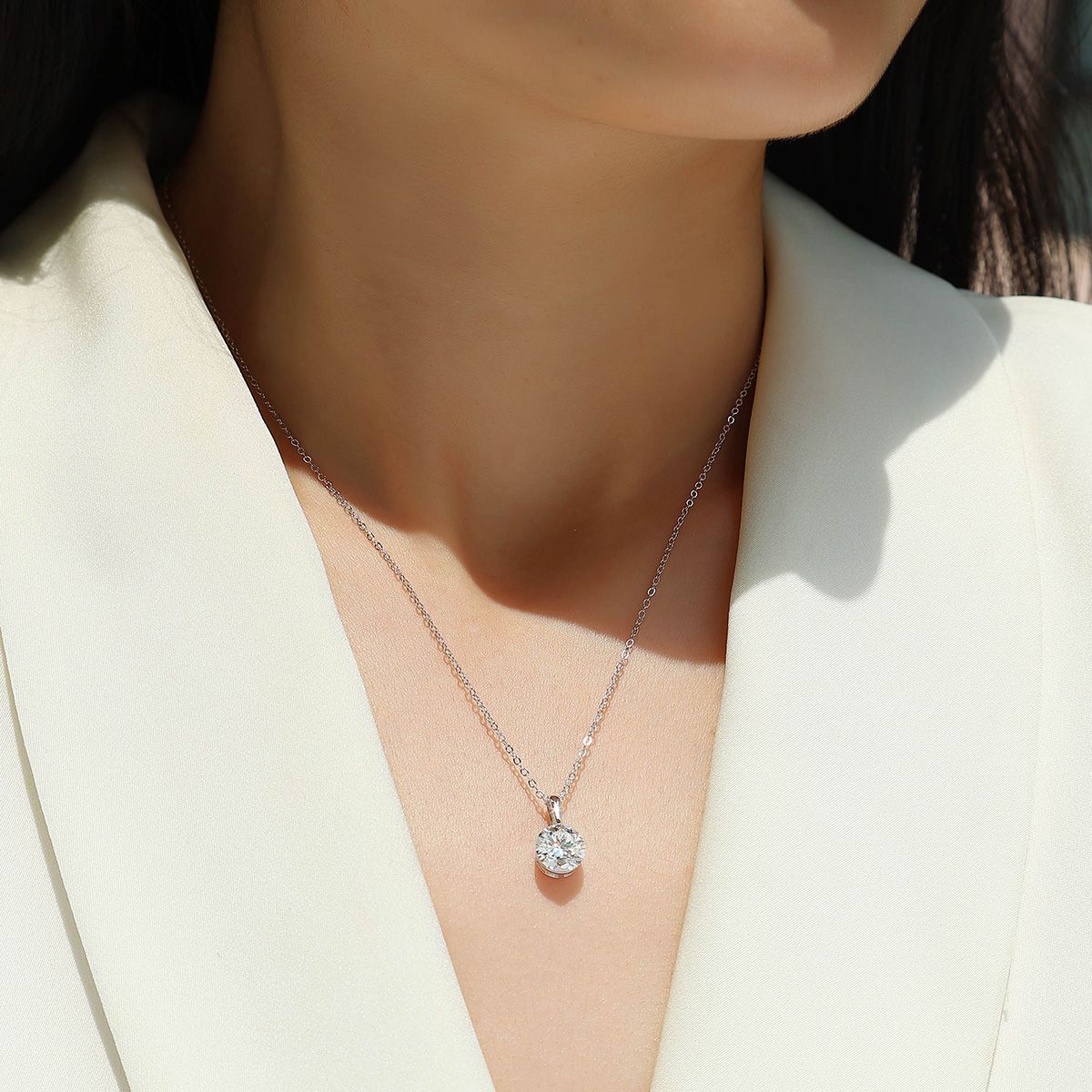 Jewelry Gemstone Pendant Necklace 2ct Round Gem Chain Moissanite Charm Necklace