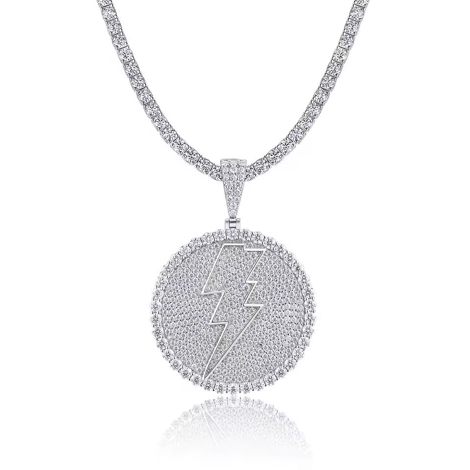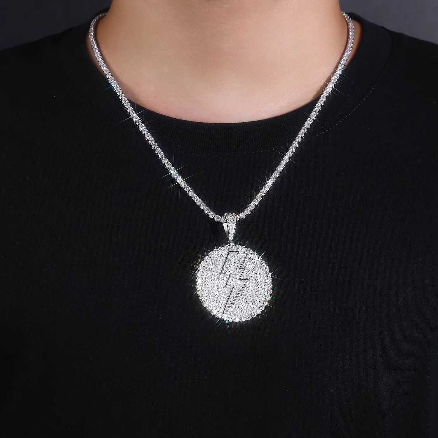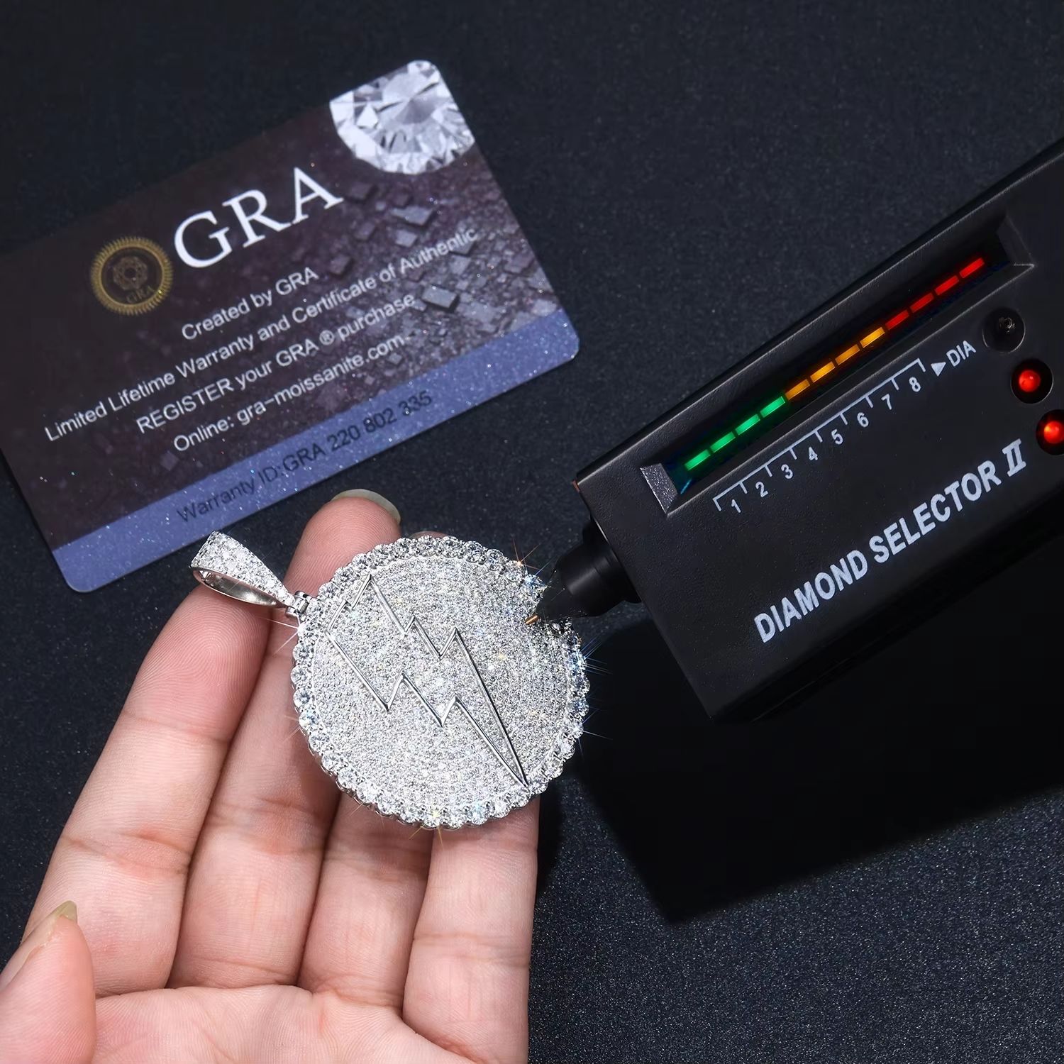 Lightning Moissanite Pendant Necklace 925 Silver 18K Gold Plated Hip Hop Style Street Fashion Design GRA Certificate