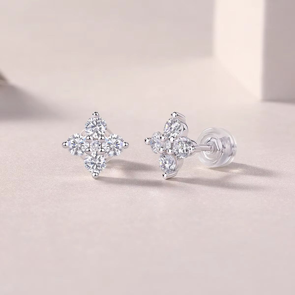 Luxury Female Fine Jewelry Stylish 925 Sterling Silver Moissanite Stud Earrings Women Hypoallergenic Jewelry Earrings