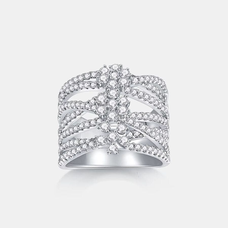 Luxury Interlaced Design Flower Moissanite Wedding Ring 925 Sterling Silver Rhodium Plated GRA Certificate Jewelry Promise Ring
