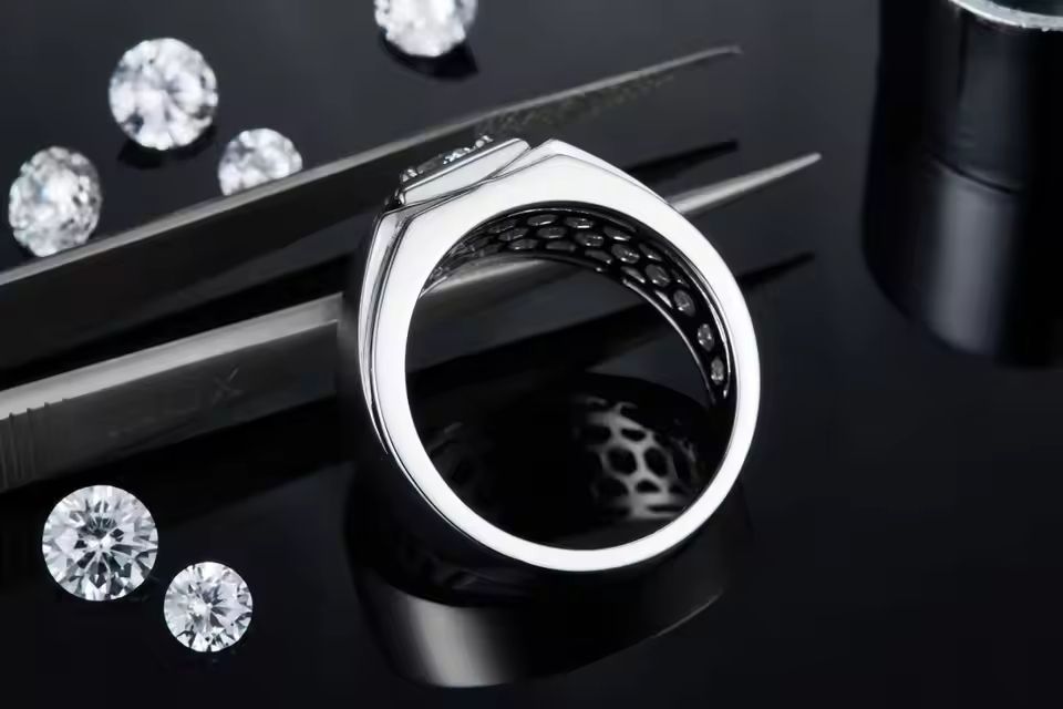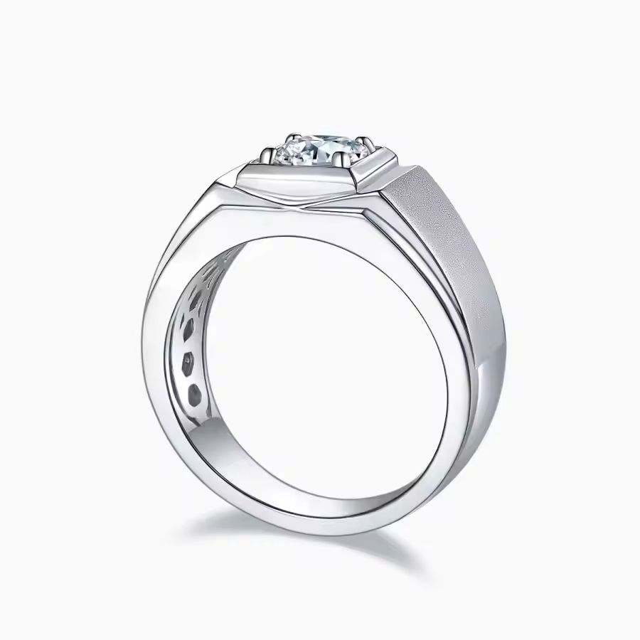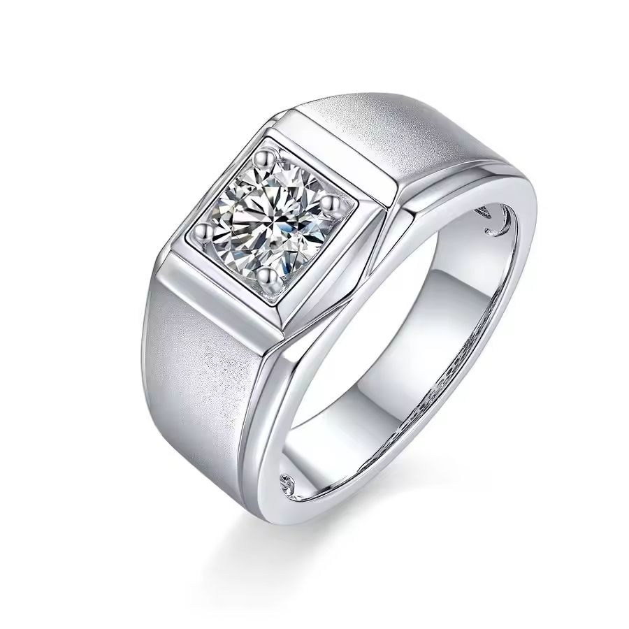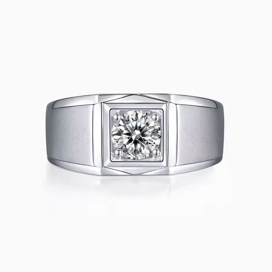 Men's 1 Carat Moissanite Ring in 925 Sterling Silver Single Stone Wedding Engagement Anniversary Gift