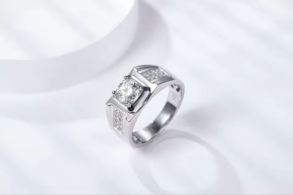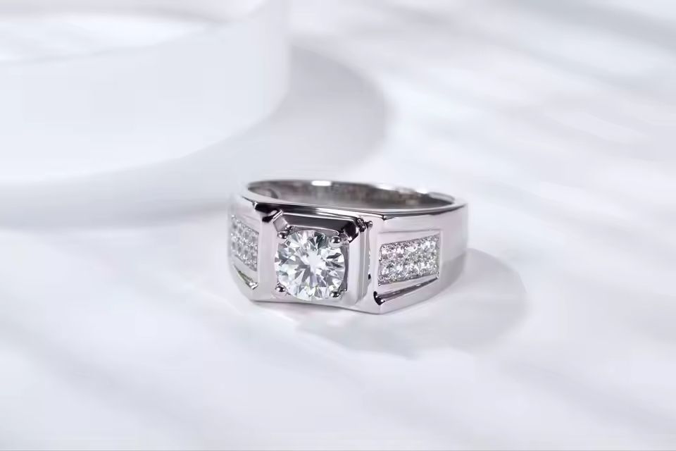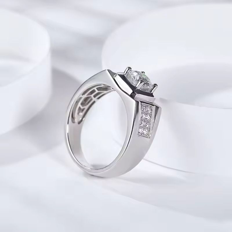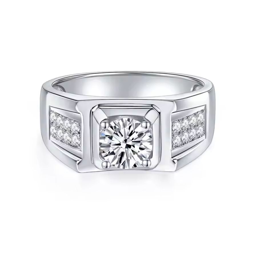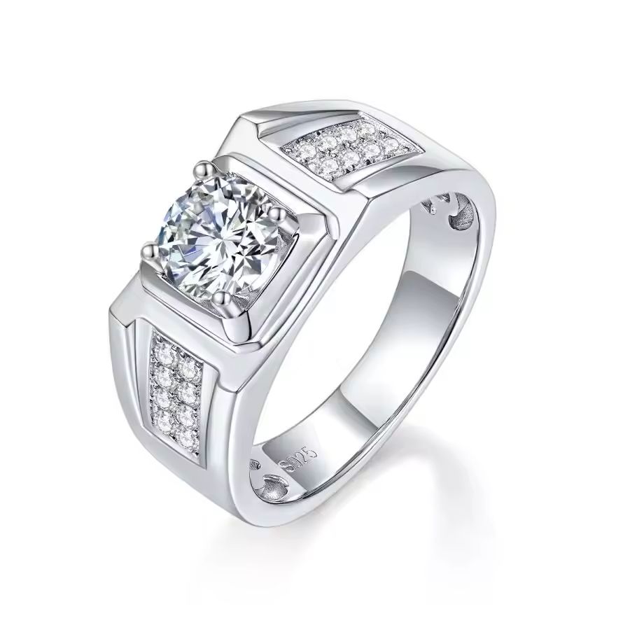 Men's Moissanite Wedding Ring 1 Carat D Color VVS1 Round Brilliant Cut S925 Silver Promise Ring