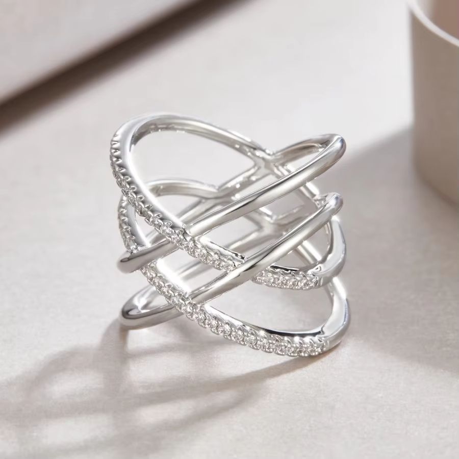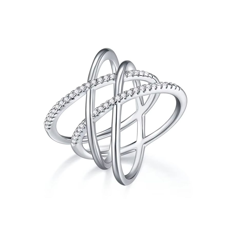 Moissanite 0.336CTW Cross Band Ring 925 Sterling Silver Platinum Plated Certified Gift for Women