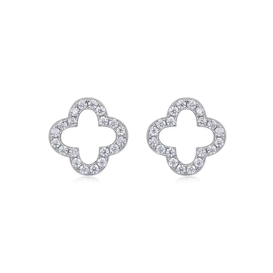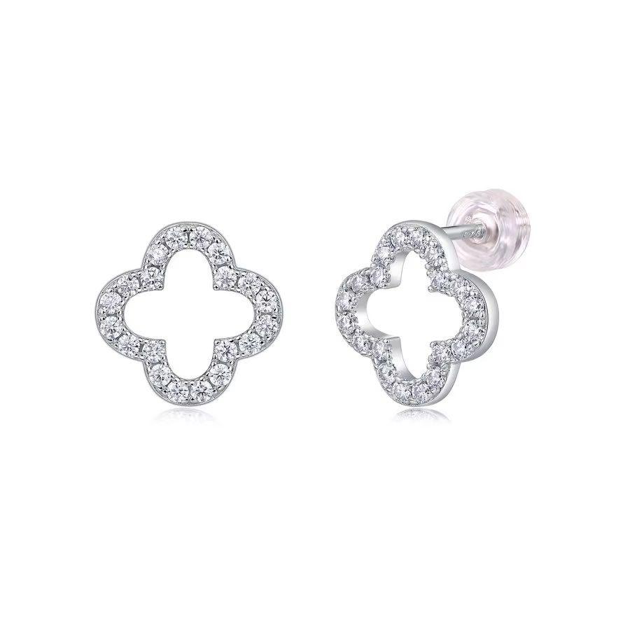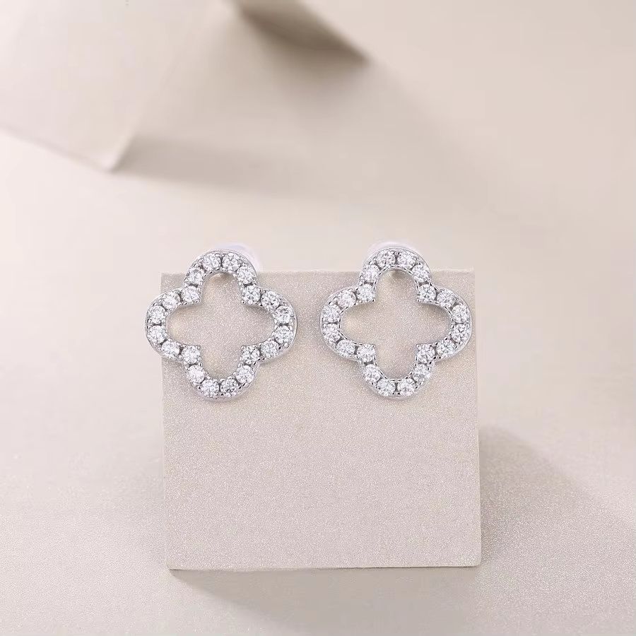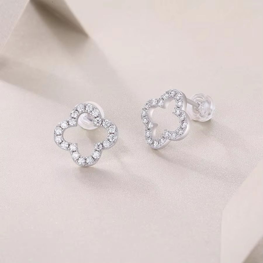 Moissanite 0.6CTW Earrings Clover Shape 925 Sterling Silver with Platinum Plating Quality Guaranteed Gift for Women