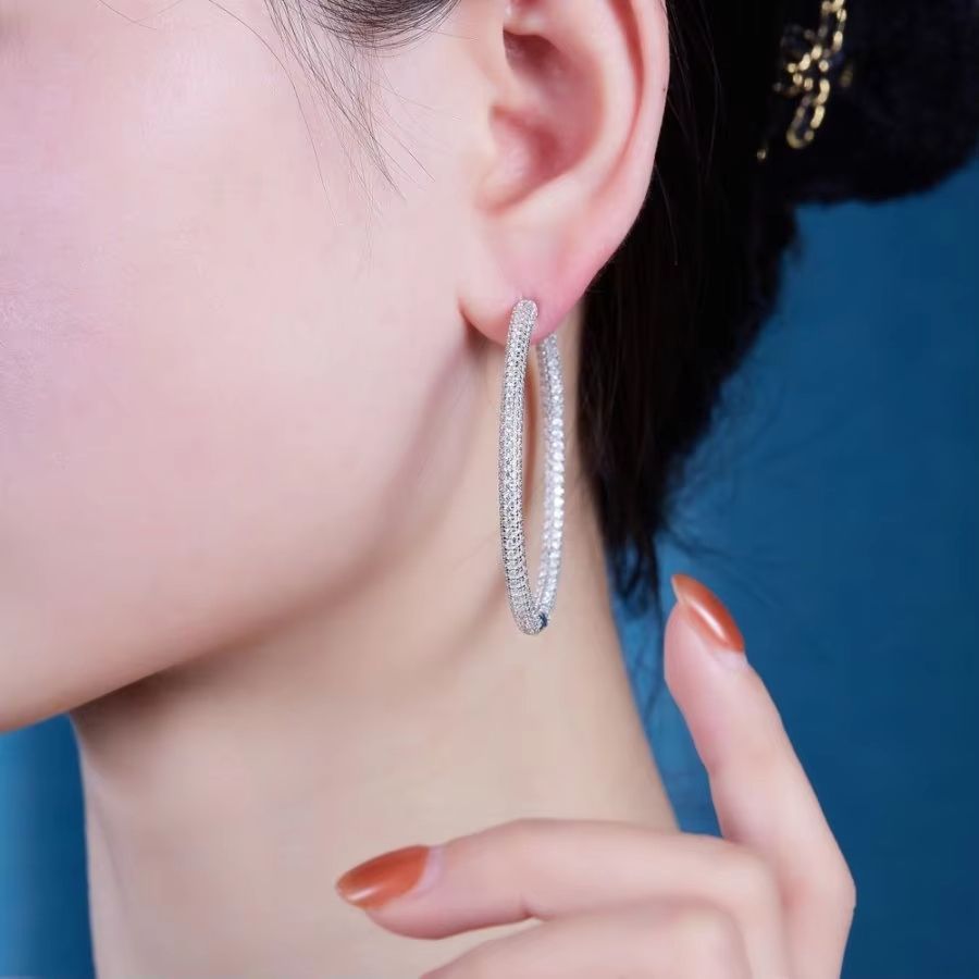 Moissanite 10.98CTW Hoop Earrings Elegant Full Pave Design 925 Sterling Silver Platinum Plated for Women