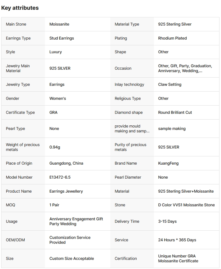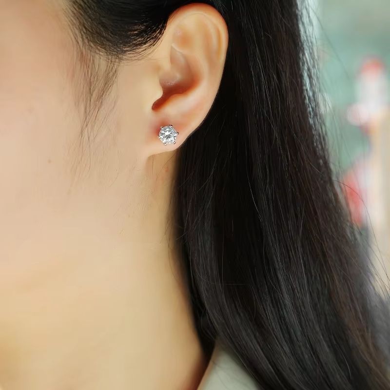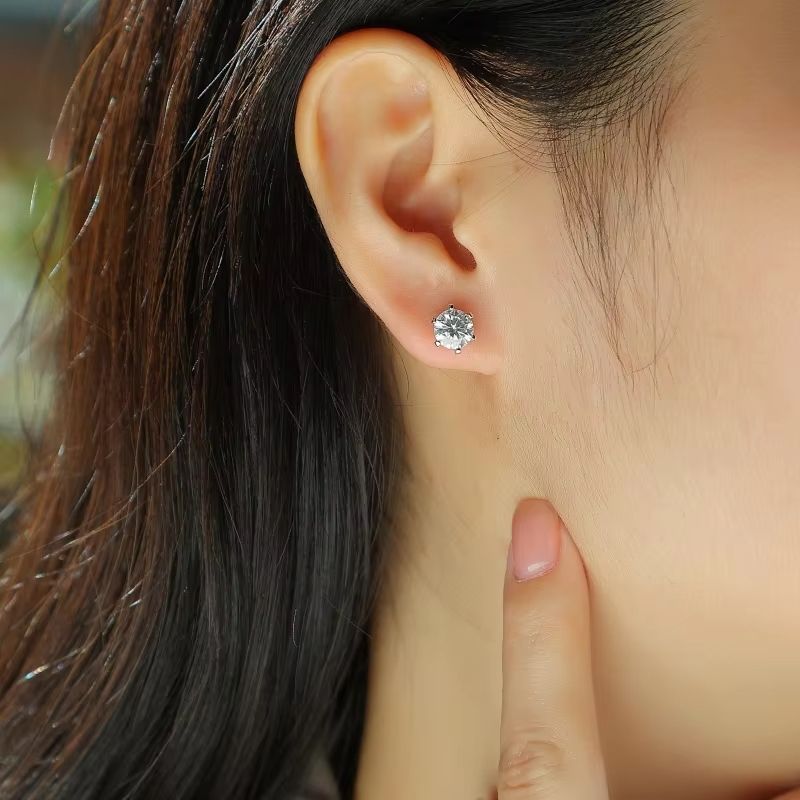 Moissanite 1ct Engagement Earrings Six Claw Moissanite Stud Earrings Female Elegant S925 Sterling Silver Earring