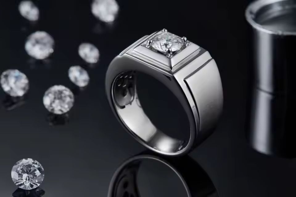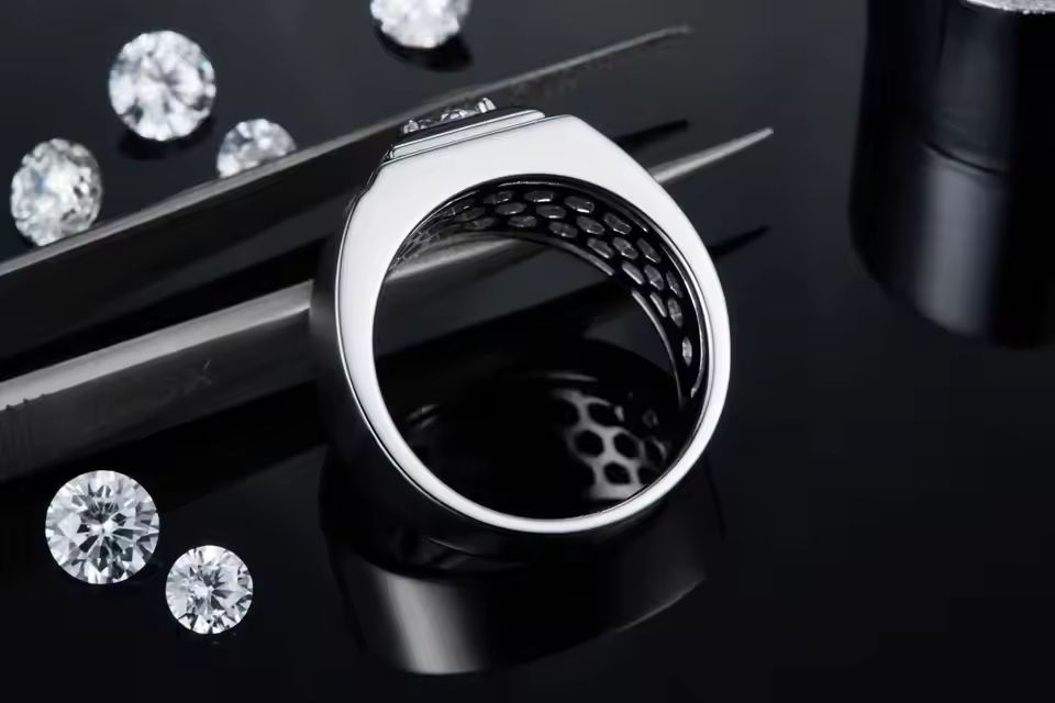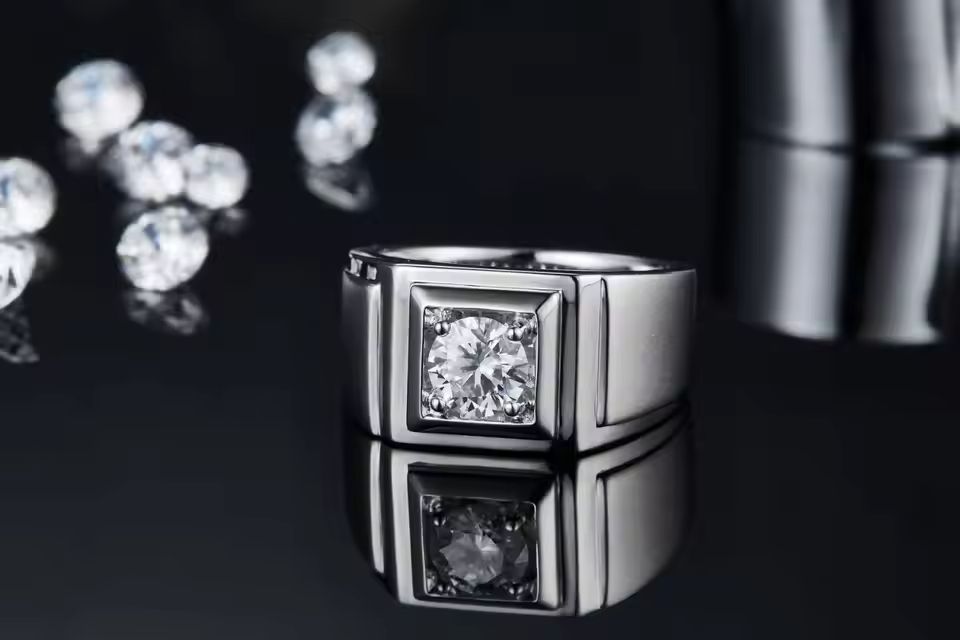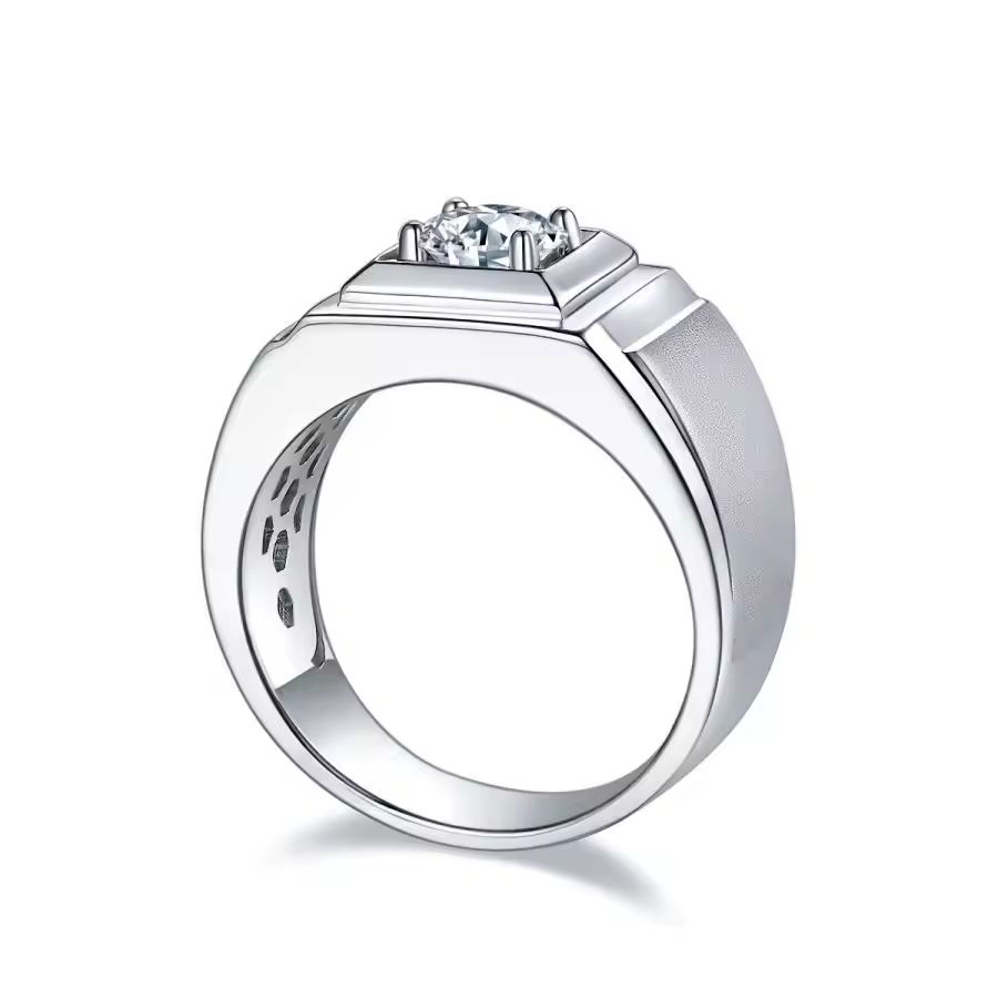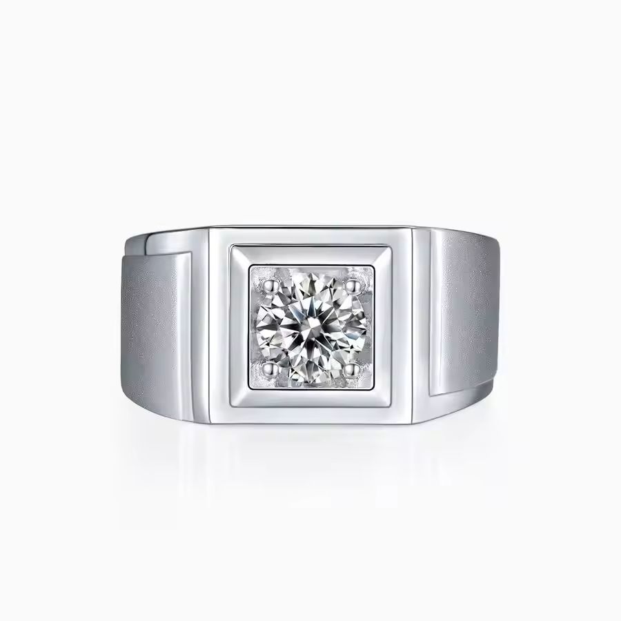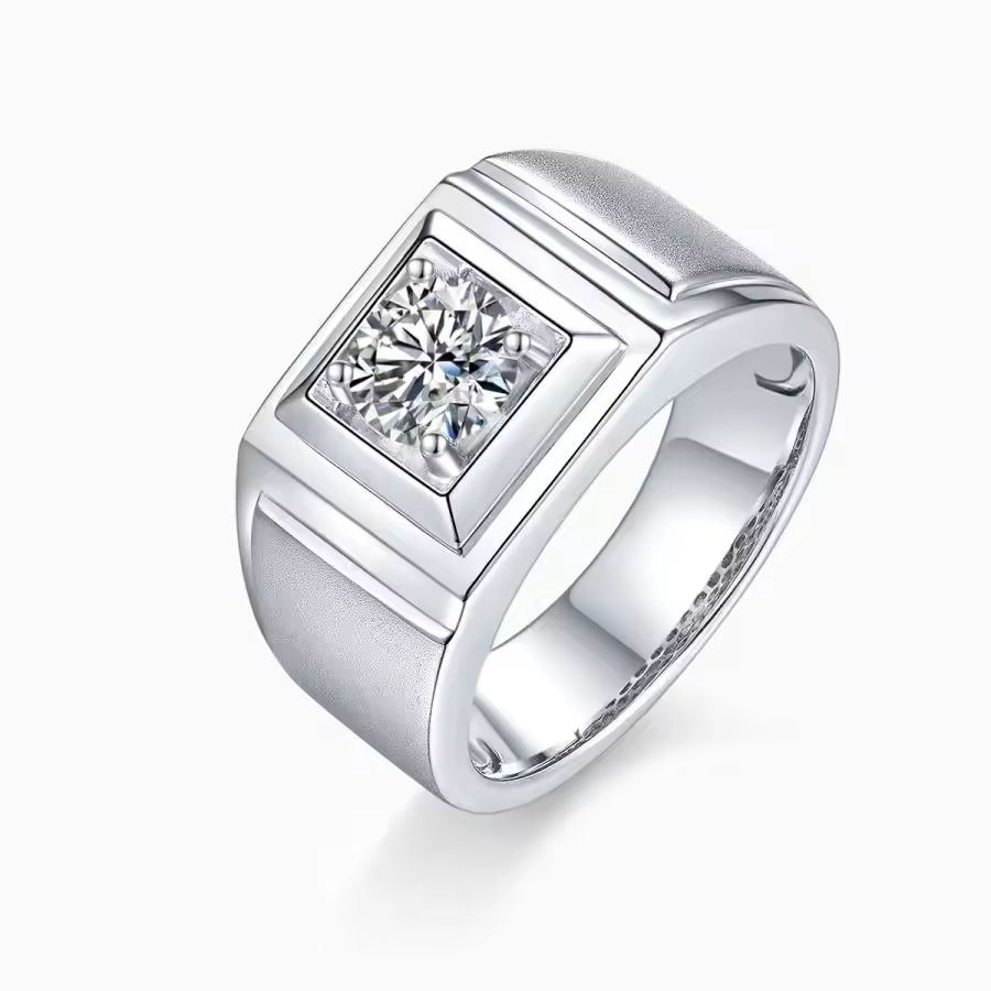 Moissanite 1ct S925 Silver Men's Ring Luxury Men's Wedding Business and Gift Ring for Events and Ceremonies