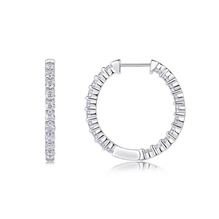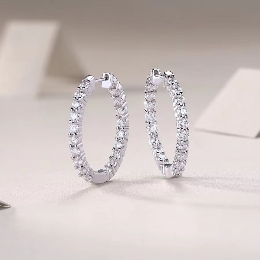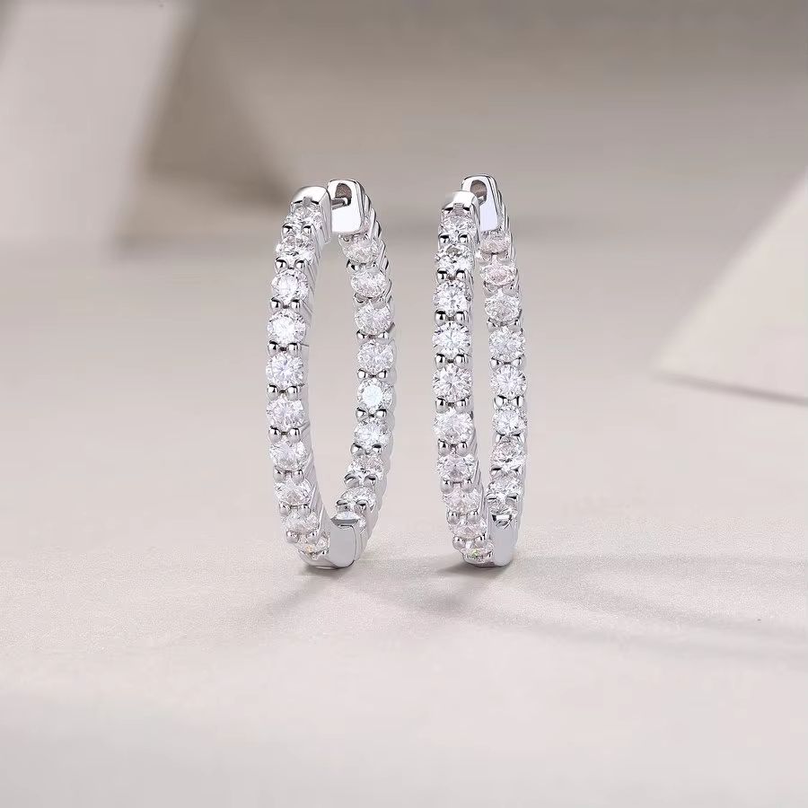 Moissanite 2.52CTW Hoop Earrings 925 Sterling Silver 18K Gold Plated Double Row Sparkling Jewelry for Women Perfect Daily Gift