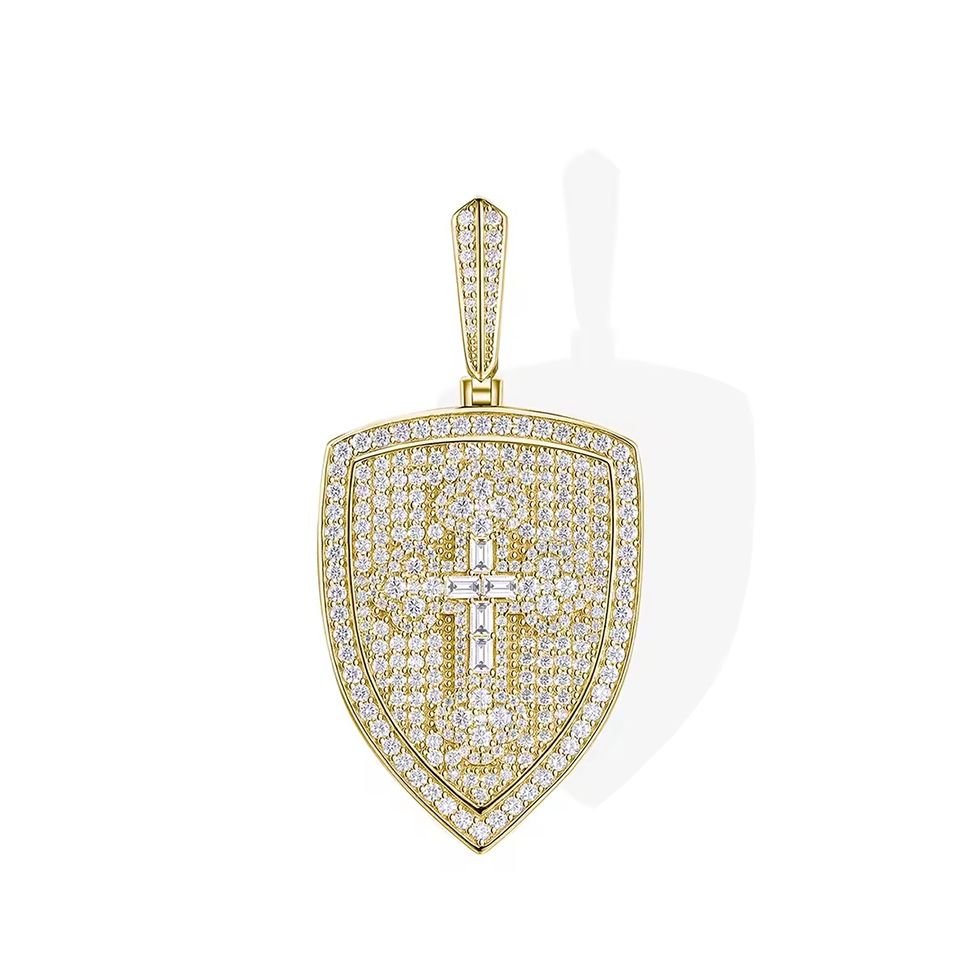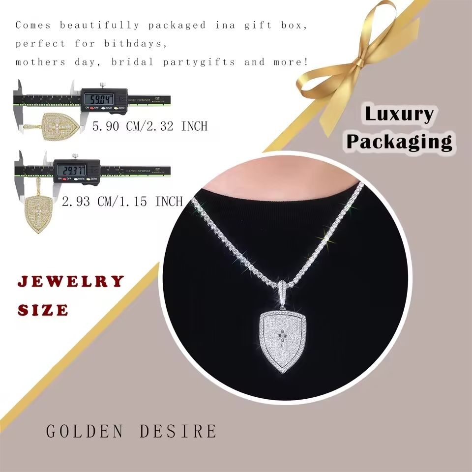 Moissanite 2.73 CTW Shield Pendant for Men S925 Silver 18K Gold Plated Fit Cuban or Tennis Chain Jewelry Gift GRA Certificate