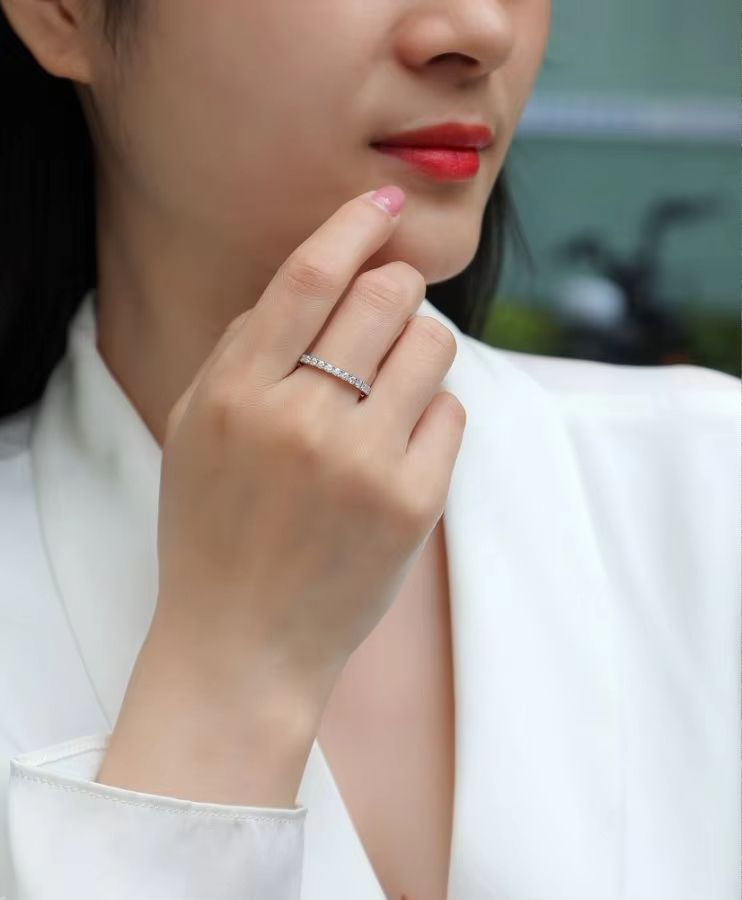 Moissanite 2mm Eternity Band Ring S925 Sterling Silver Square Design Wedding or Anniversary Gift for Women