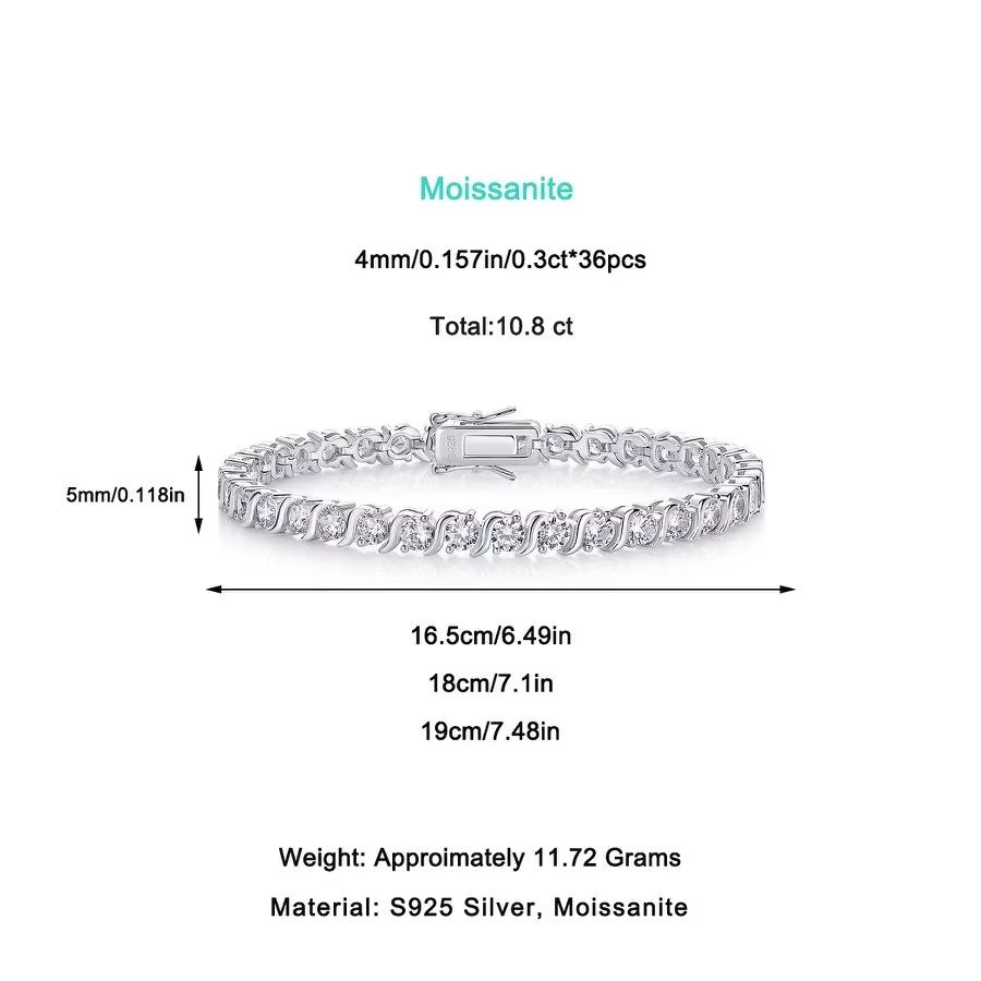 Moissanite 4mm Tennis Bracelet S925 Sterling Silver Luxury Jewelry Gold