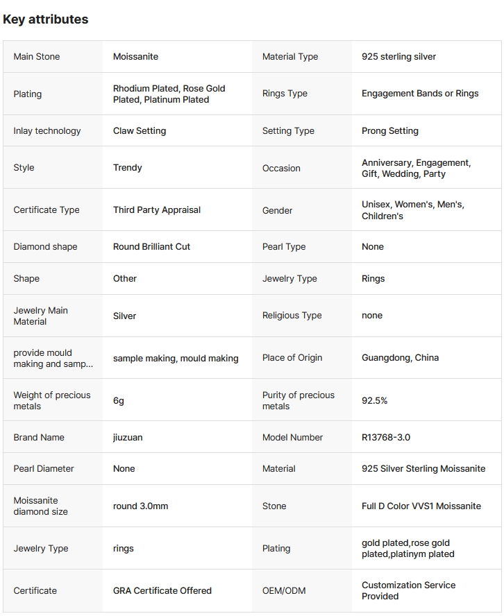Platinum: Platinum is a naturally formed white precious metal, which is naturally pure and never fades.