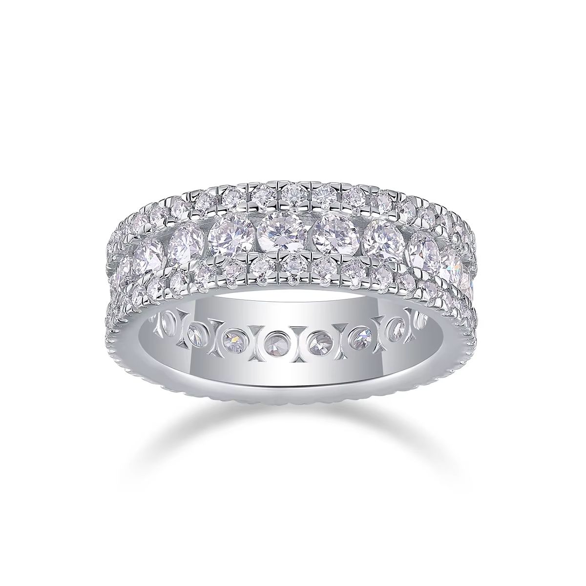 Moissanite 925 Sterling Silver Fine Jewelry Ring 3 Rows Eternity Wedding Ring Band for Women