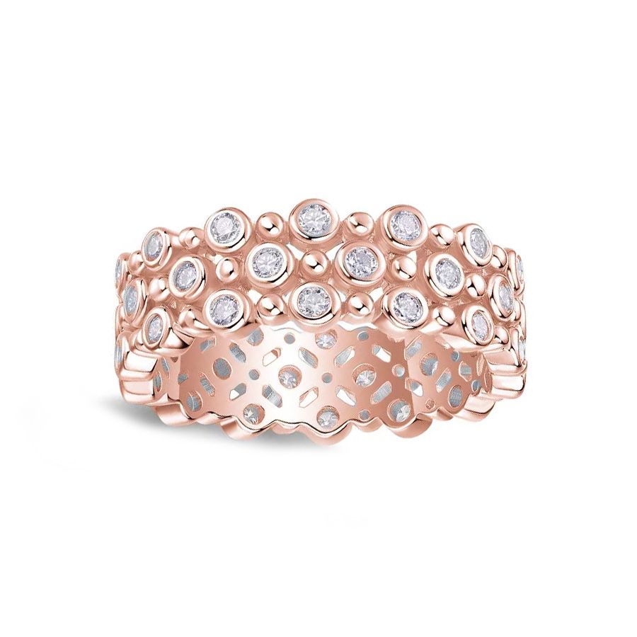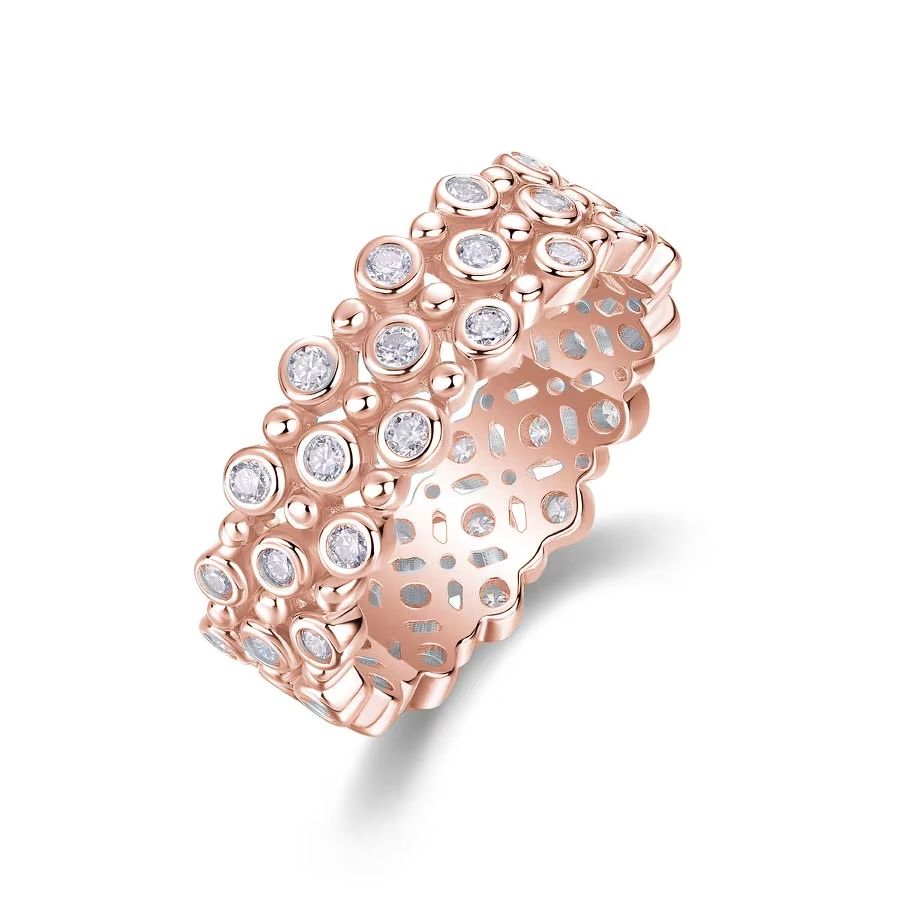 Moissanite 925 Sterling Silver Ring 1.7mm Double Row Full Pave Engagement Wedding Rose Gold