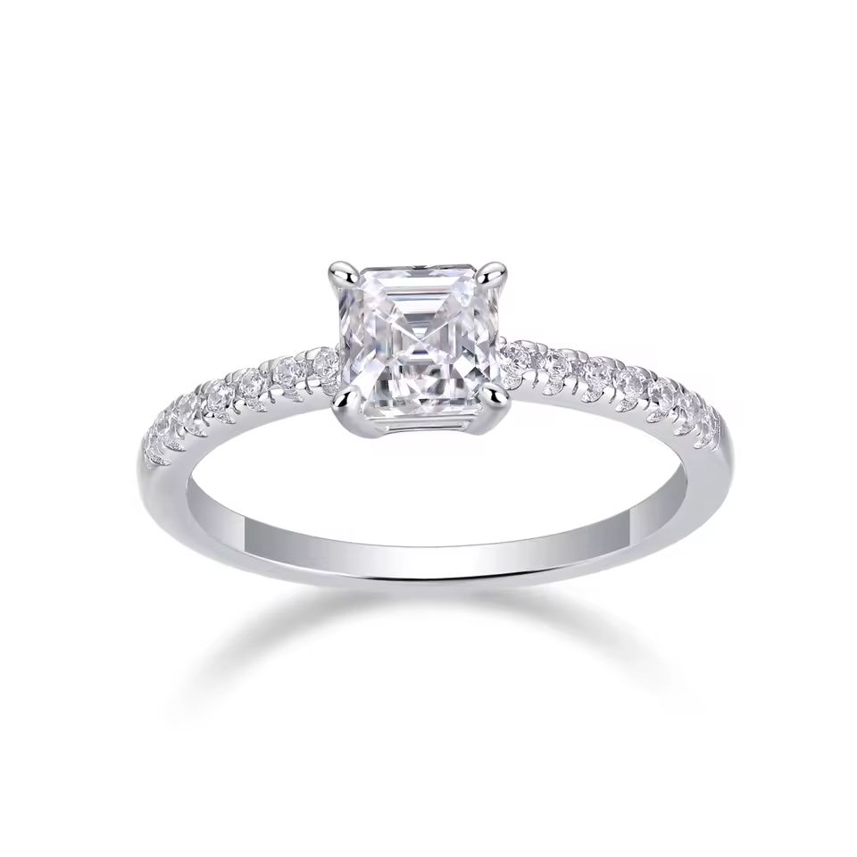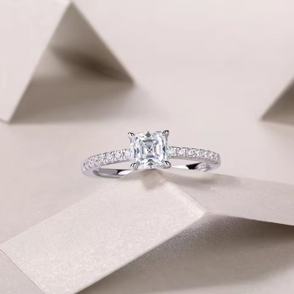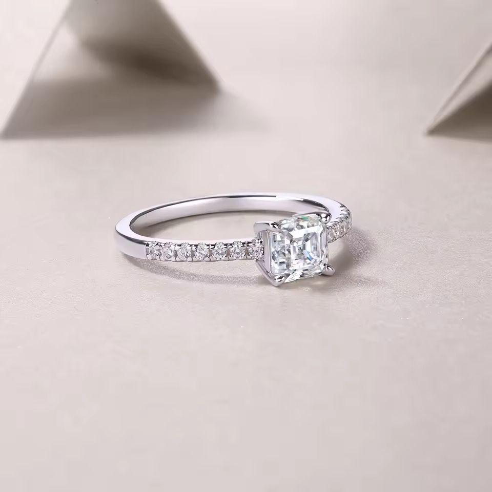 Moissanite Asscher 925 Sterling Silver Square Engagement Wedding Ring