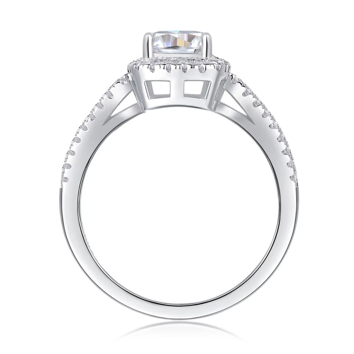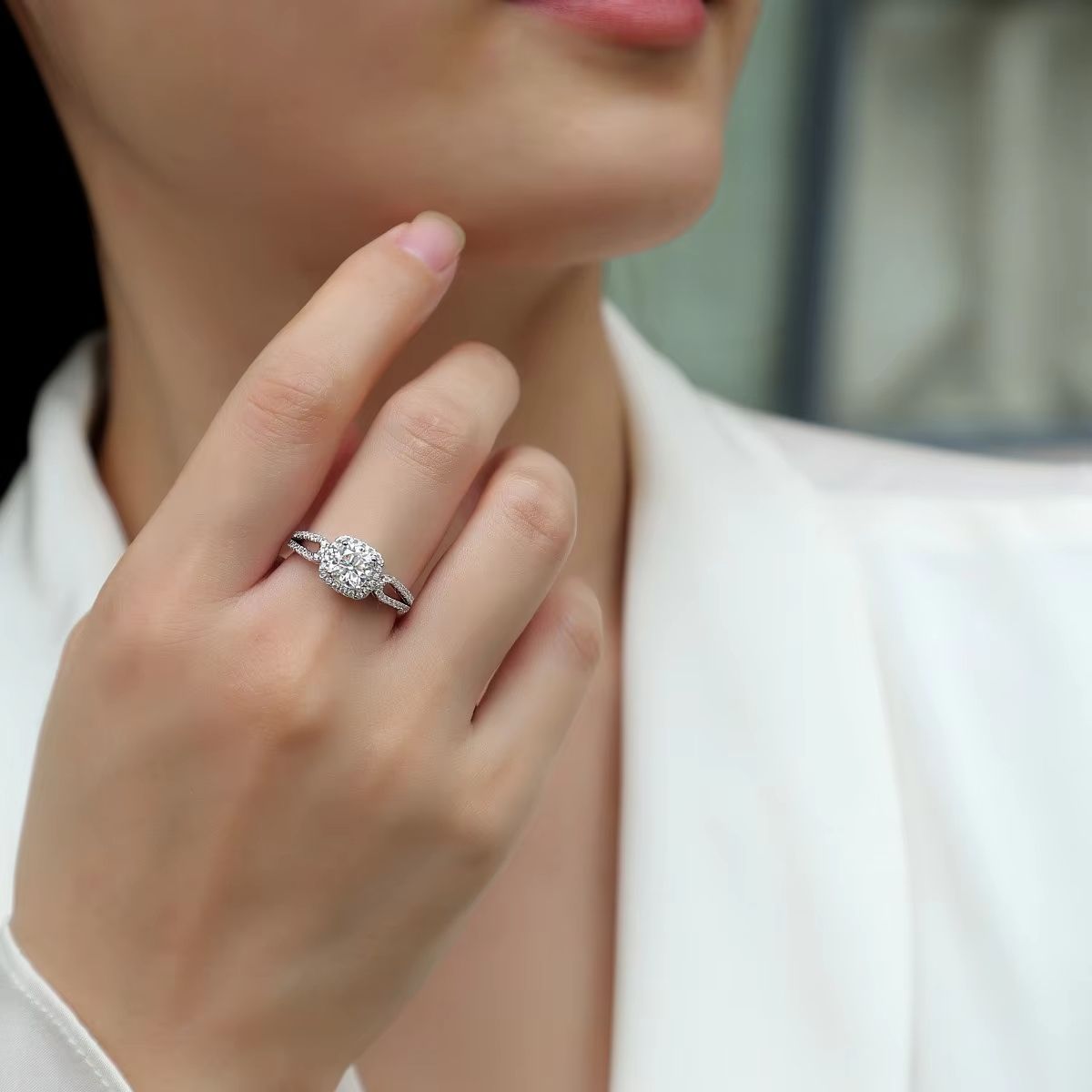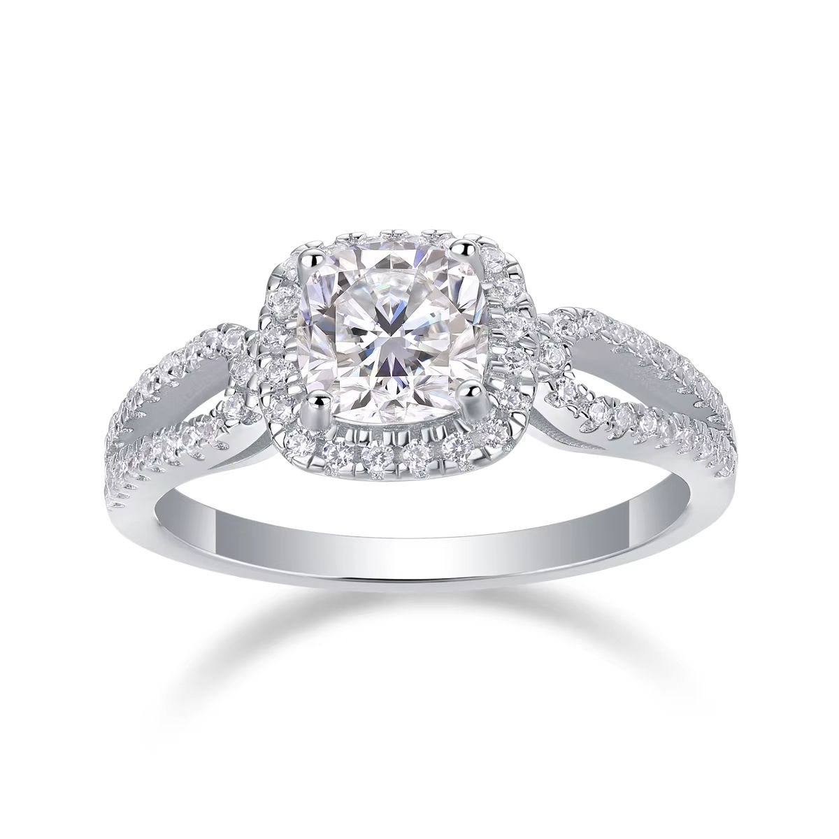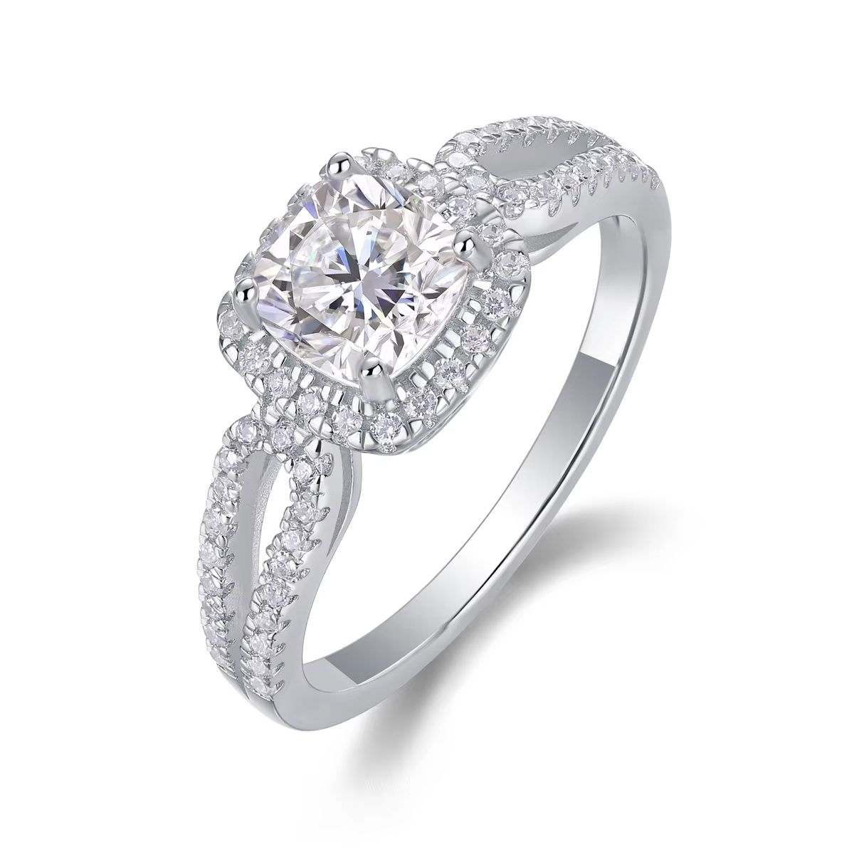 Moissanite Cushion 925 Silver Engagement Ring Ladies Pave Setting Jewelry