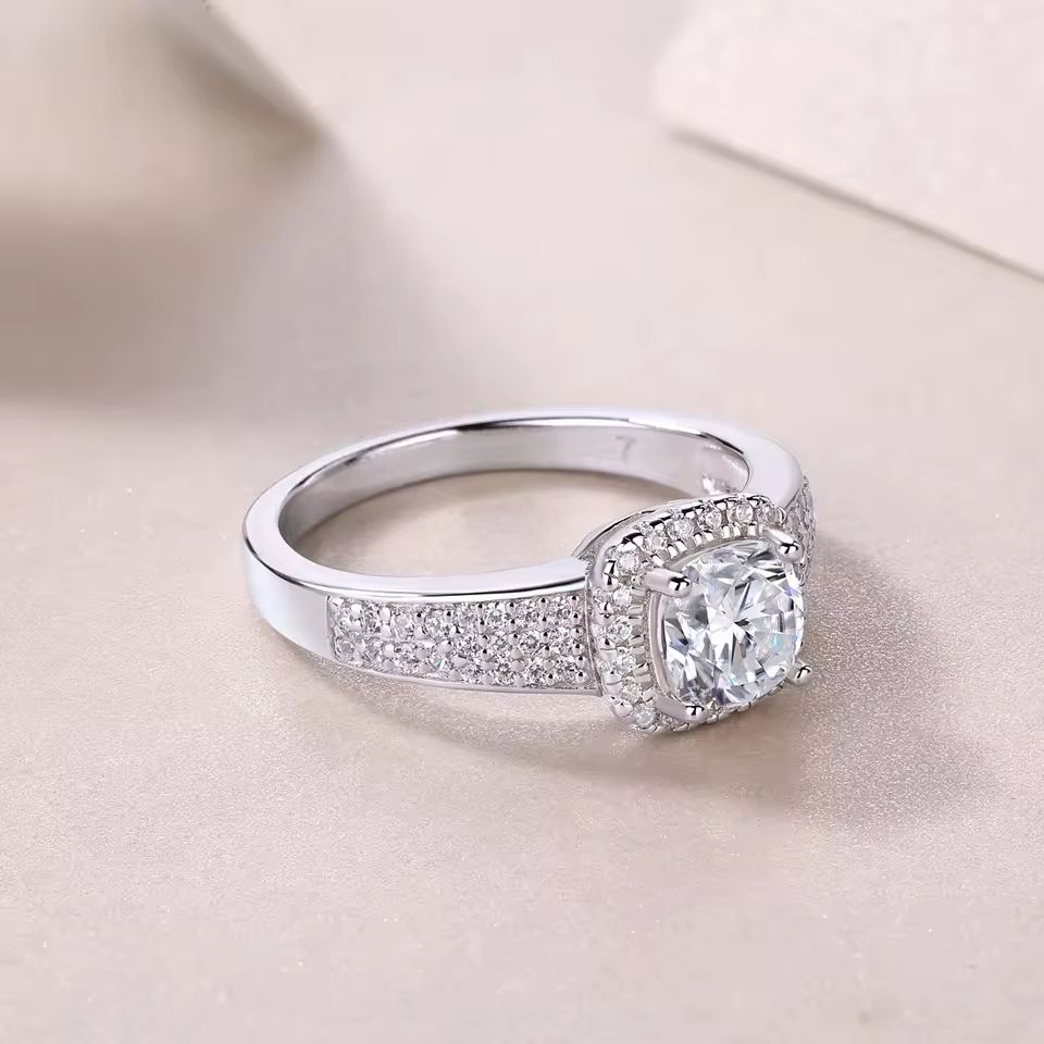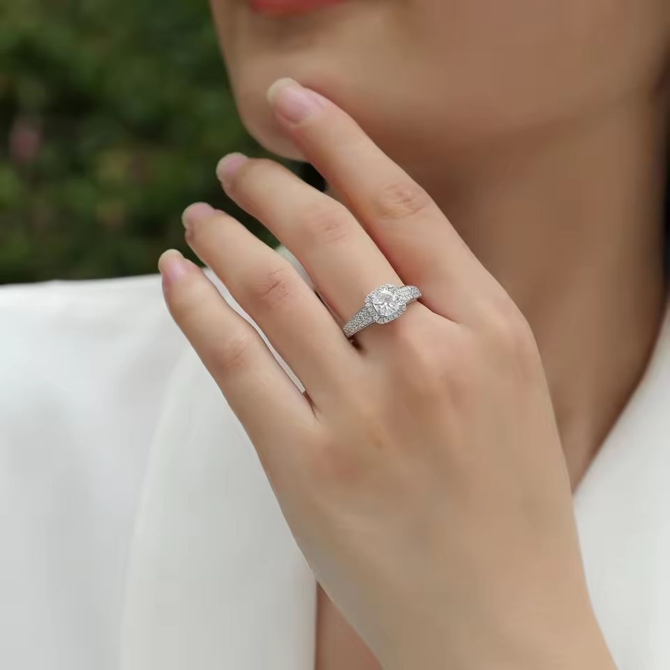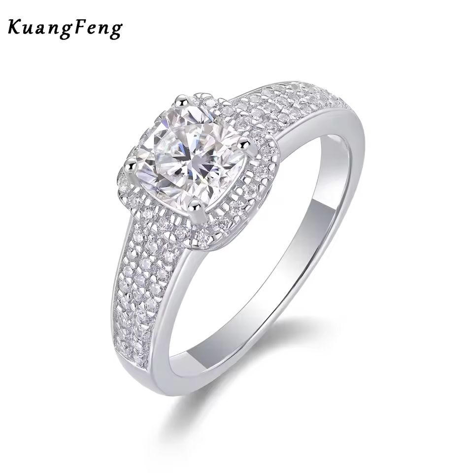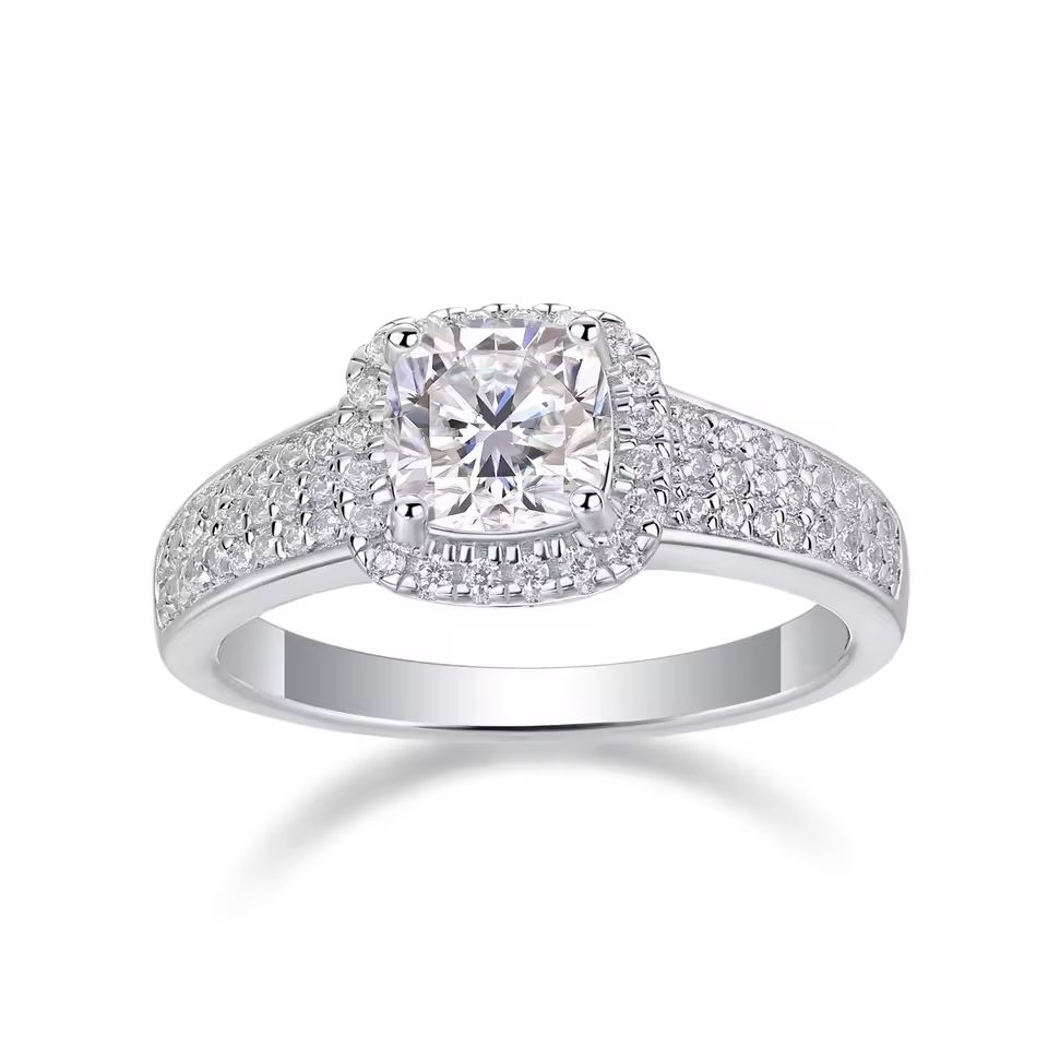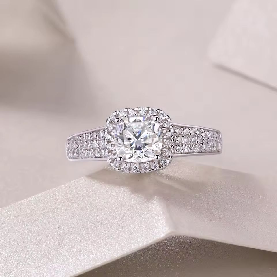 Moissanite Cushion 925 Sterling Silver Engagement & Eternity Band Rings