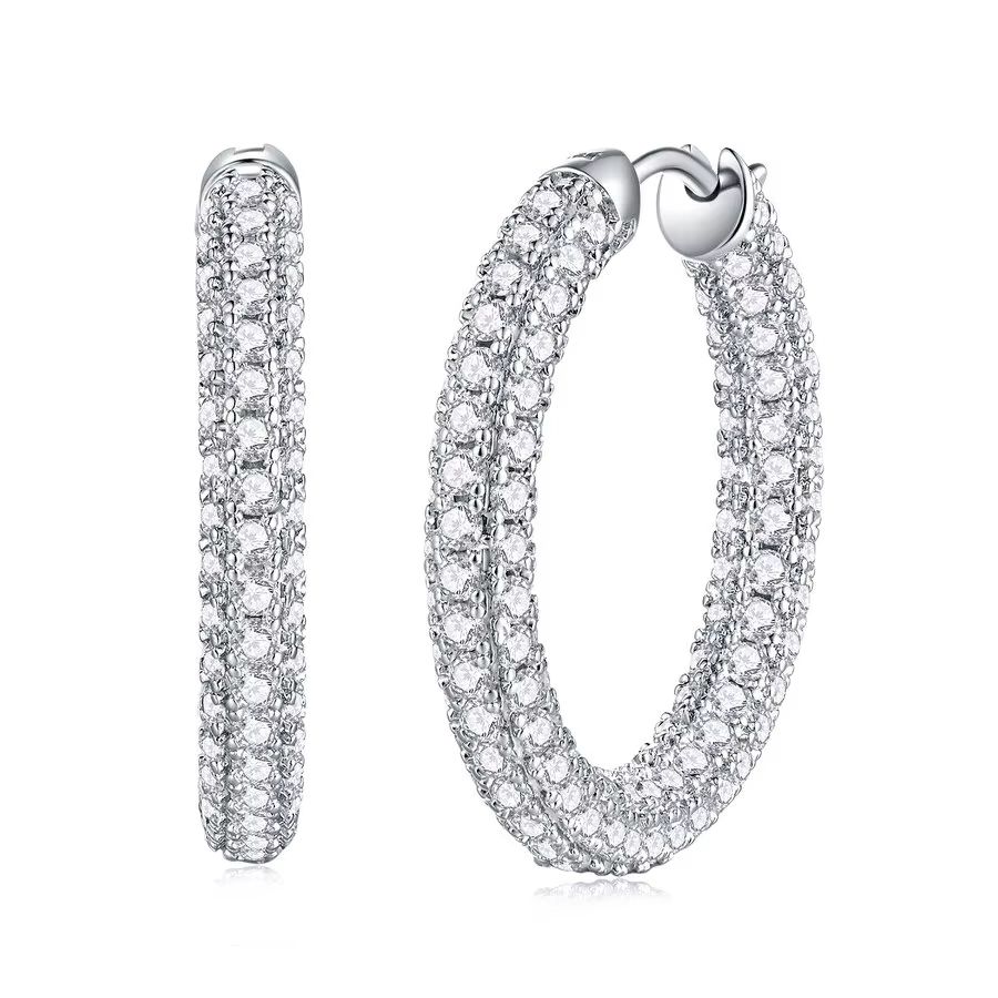 Moissanite Earrings 4.95CTW 925 Sterling Silver Hoop Style Platinum Plated Gift for Women with GRA Certificate