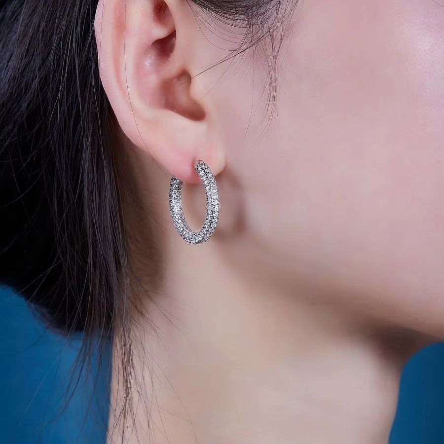 Moissanite Earrings 4.95CTW 925 Sterling Silver Hoop Style Platinum Plated Gift for Women with GRA Certificate