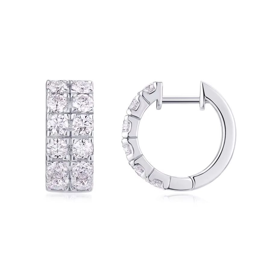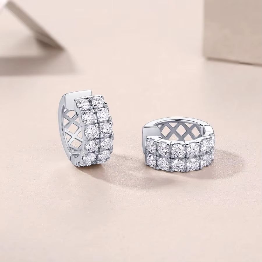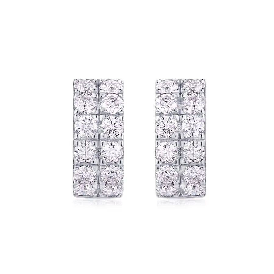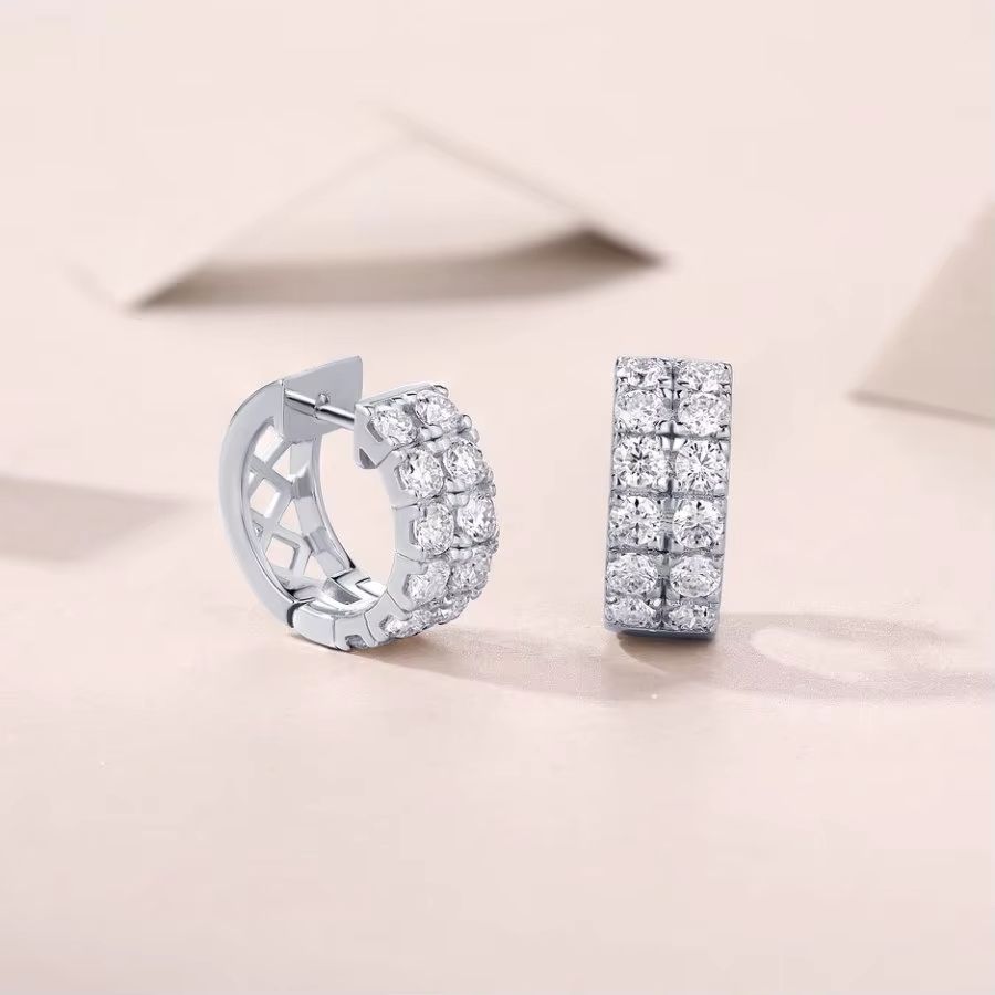 Moissanite Earrings Hoop Style 925 Sterling Silver Platinum Plated Double Row Pavé Classic Jewelry for Women Earrings