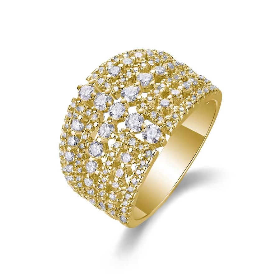 Moissanite Elegant Full Pave Sparkling Design 925 Sterling Silver Wide Band Ring Gold